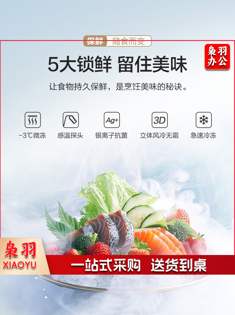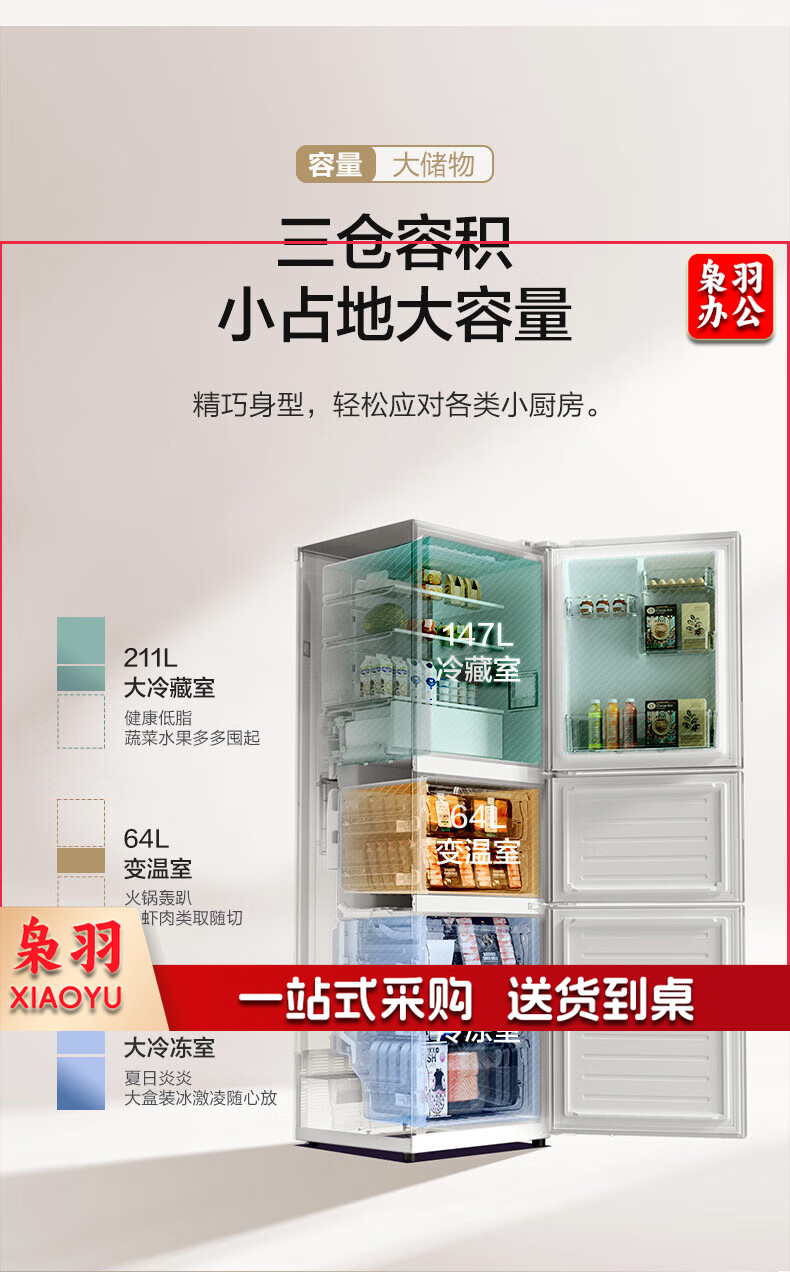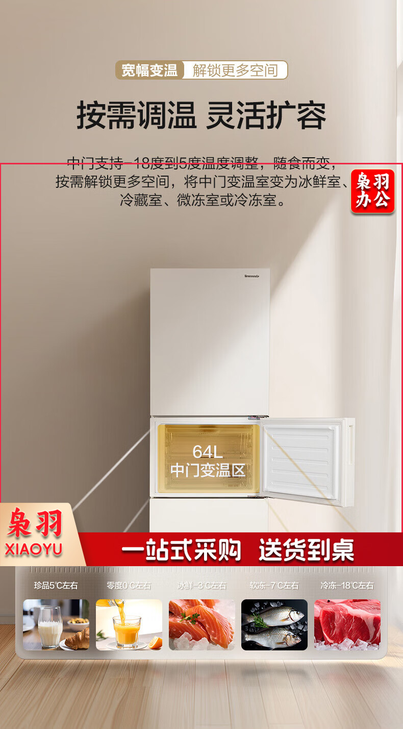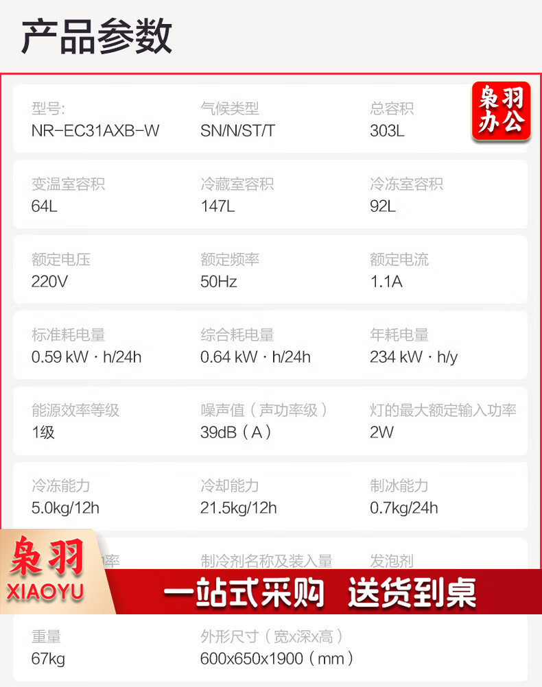 松下(Panasonic)303升家用三开门超薄嵌入式冰箱一级能效节能大冷冻无霜制冰智能小型家电NR-EC31AXB-W