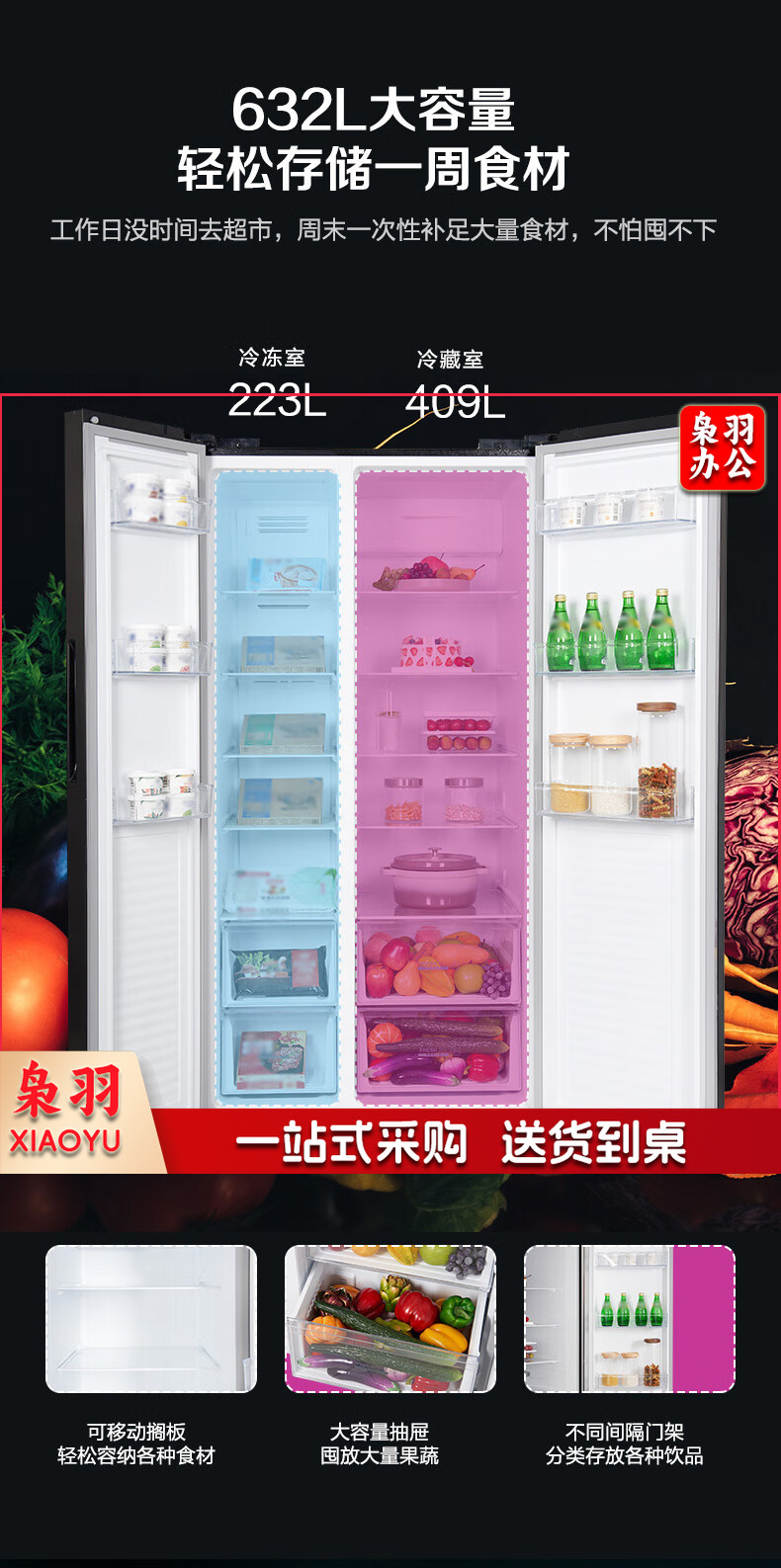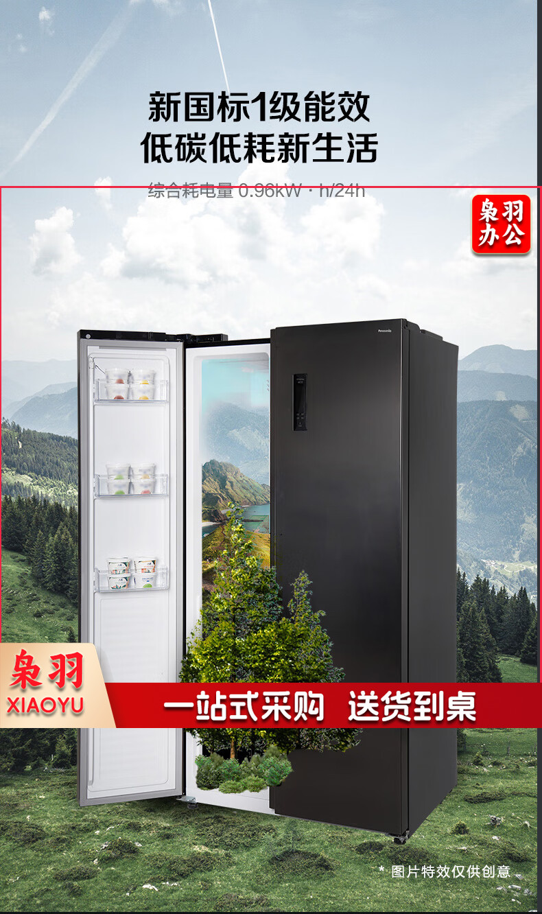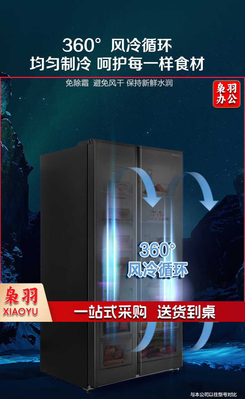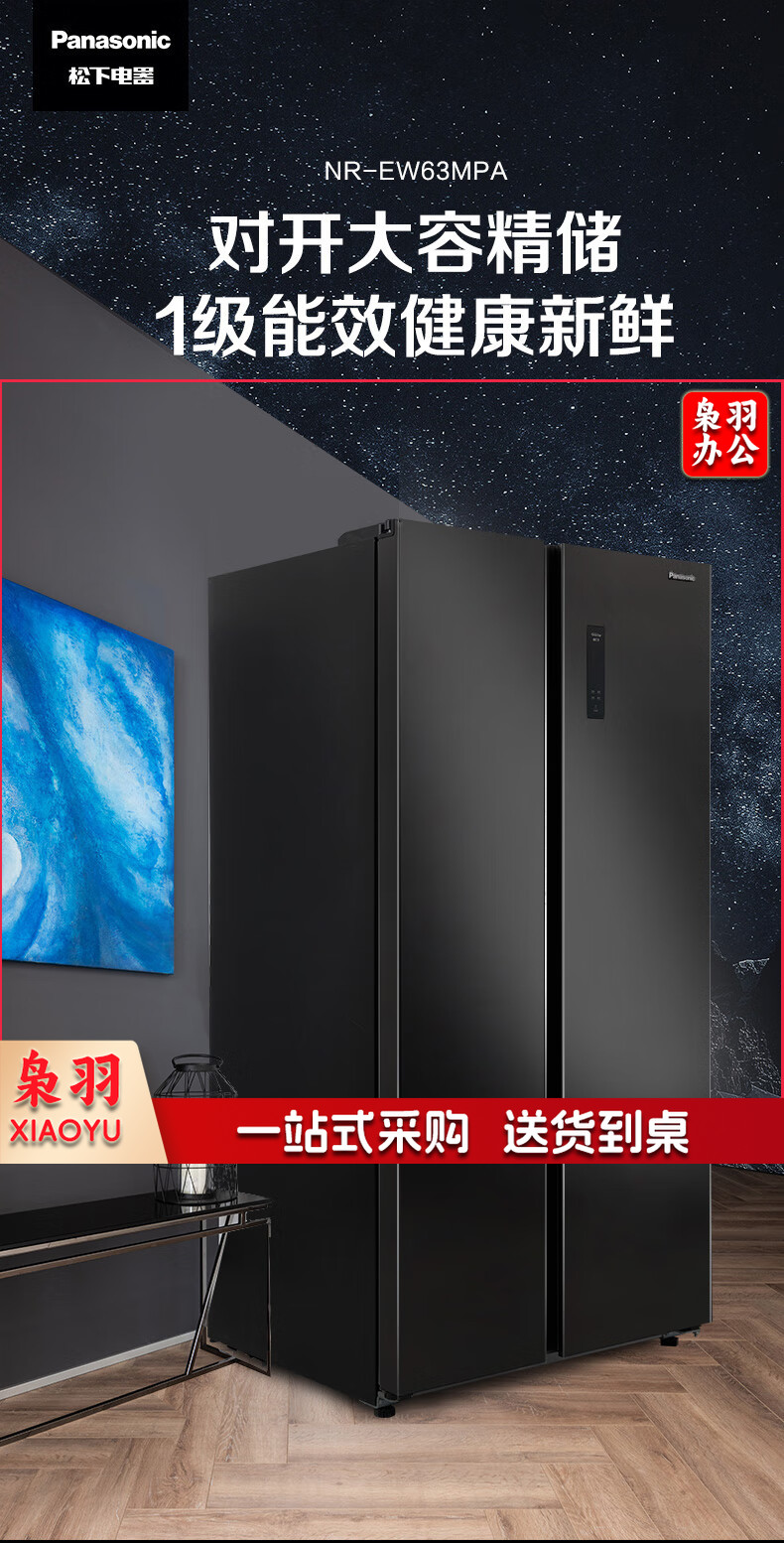 松下(Panasonic)632升对开门双开门冰箱一级能效风冷无霜变频抗菌 大容量节能家用NR-EW63MPA-B