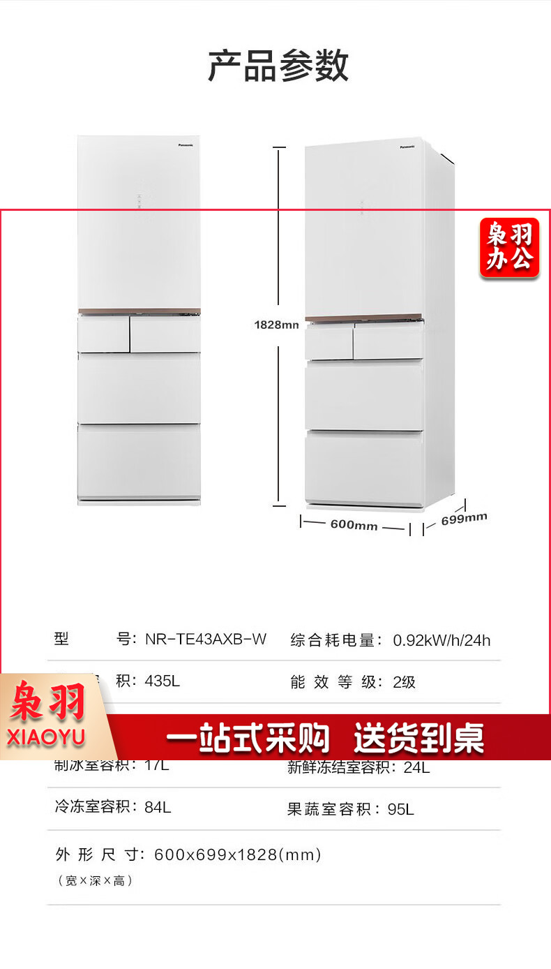松下(Panasonic)法式多门 435L可嵌入冰箱 控温保鲜大容量 自动制冰智能家电NR-TE43AXB-W