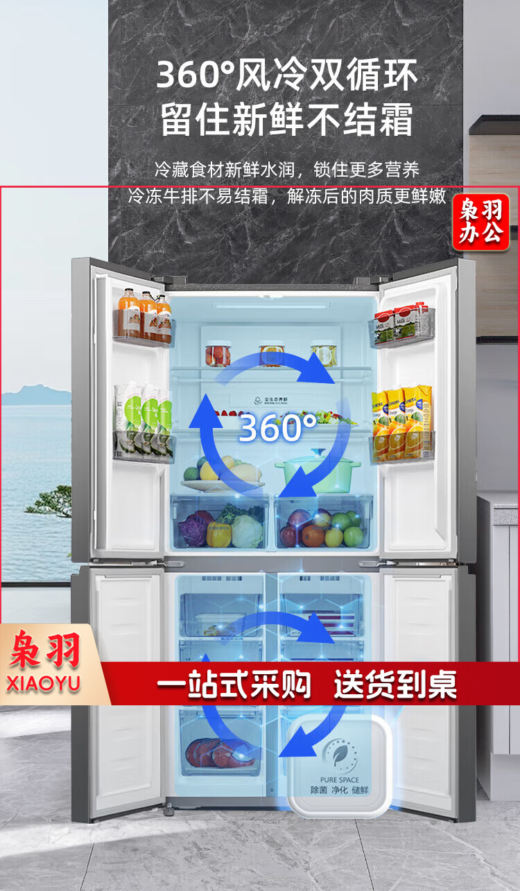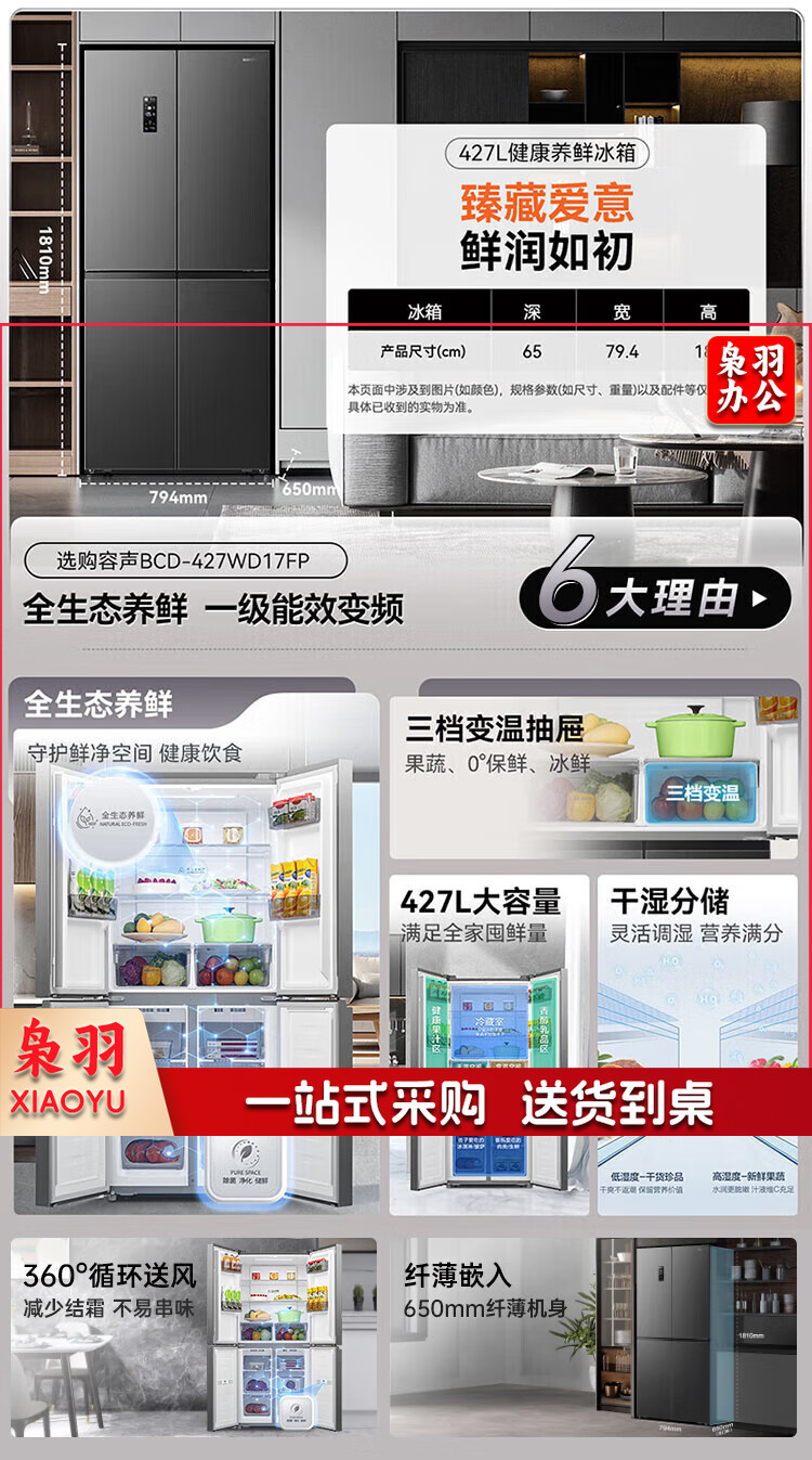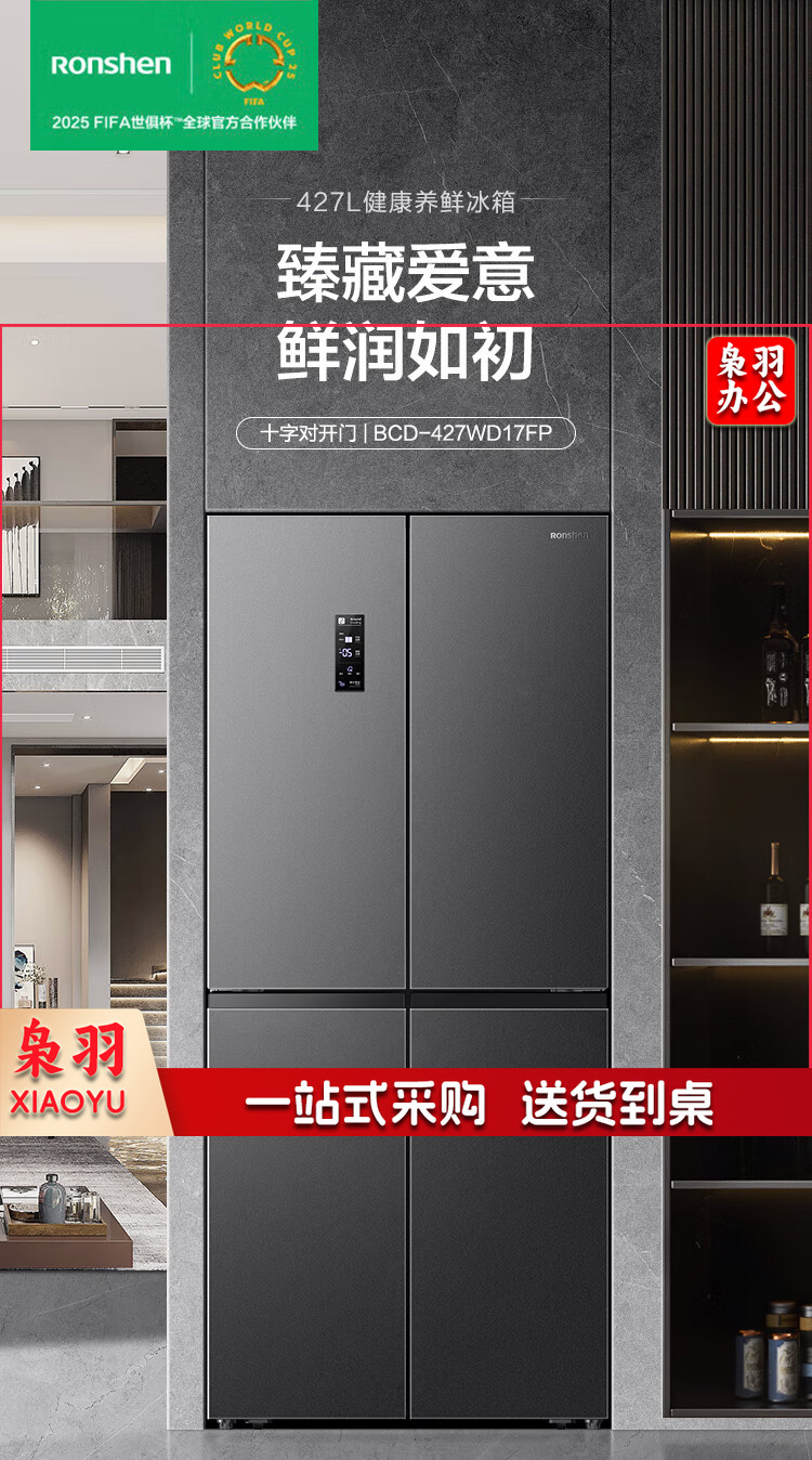 容声(Ronshen)427升十字对开双开四开多门冰箱一级能效双变频节能家用无霜大容量纤薄嵌入BCD-427WD17FP换新补贴