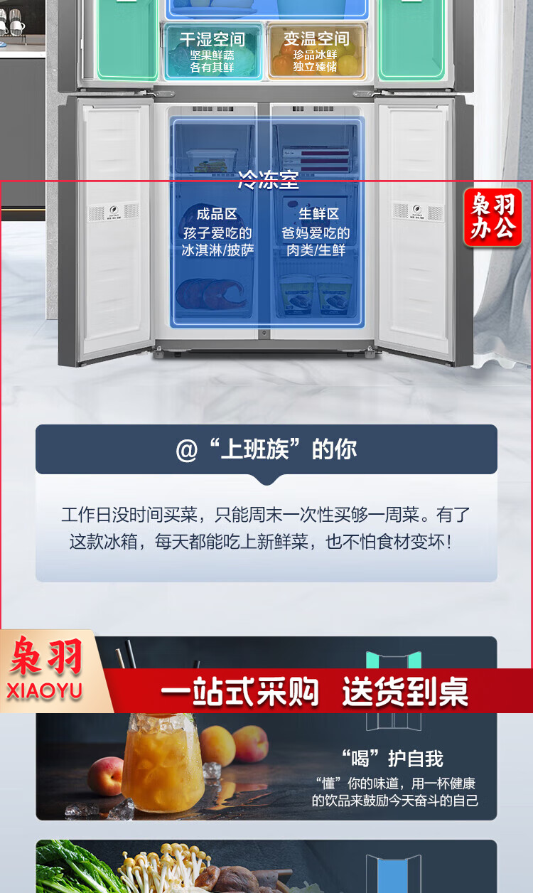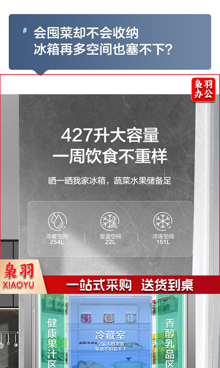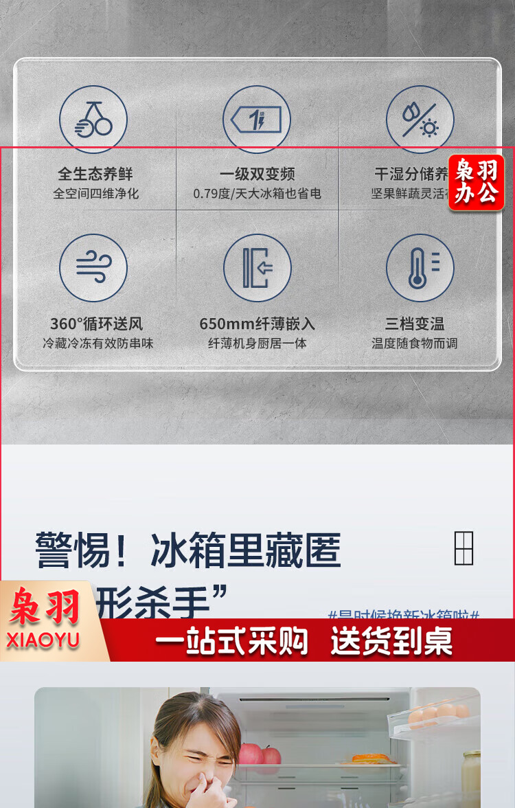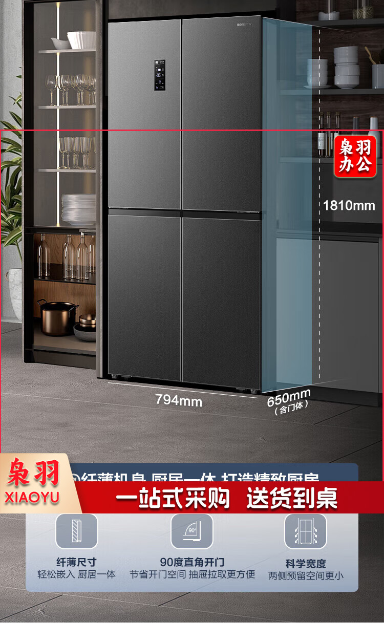 容声(Ronshen)427升十字对开双开四开多门冰箱一级能效双变频节能家用无霜大容量纤薄嵌入BCD-427WD17FP换新补贴
