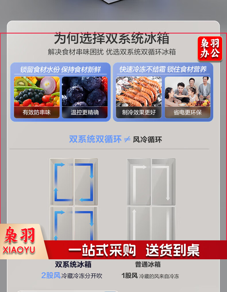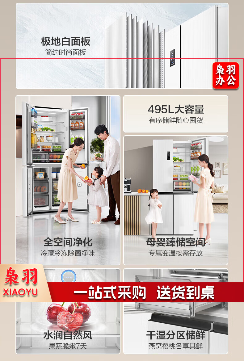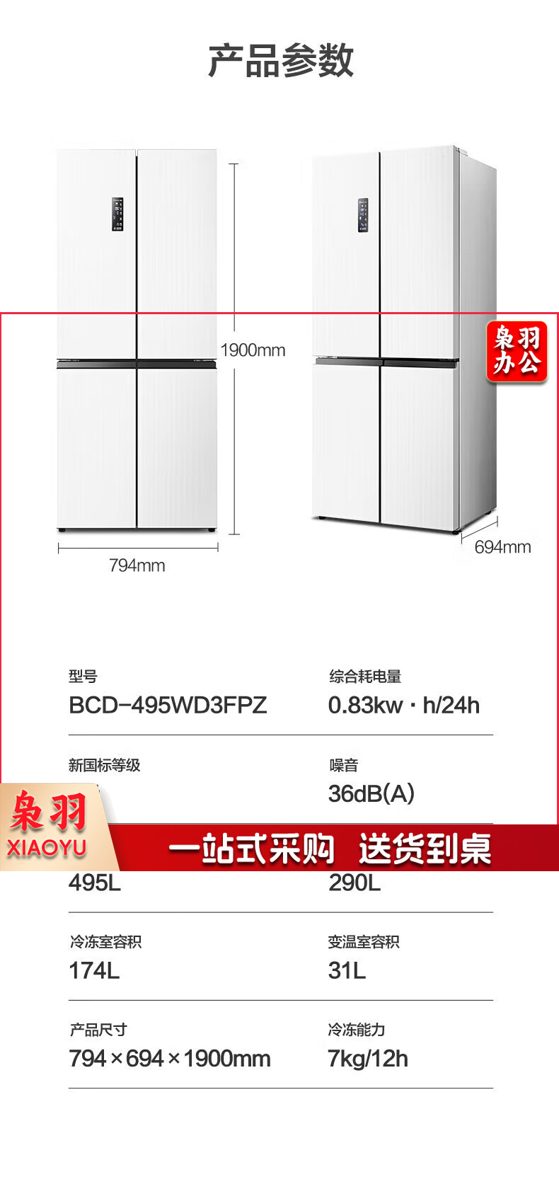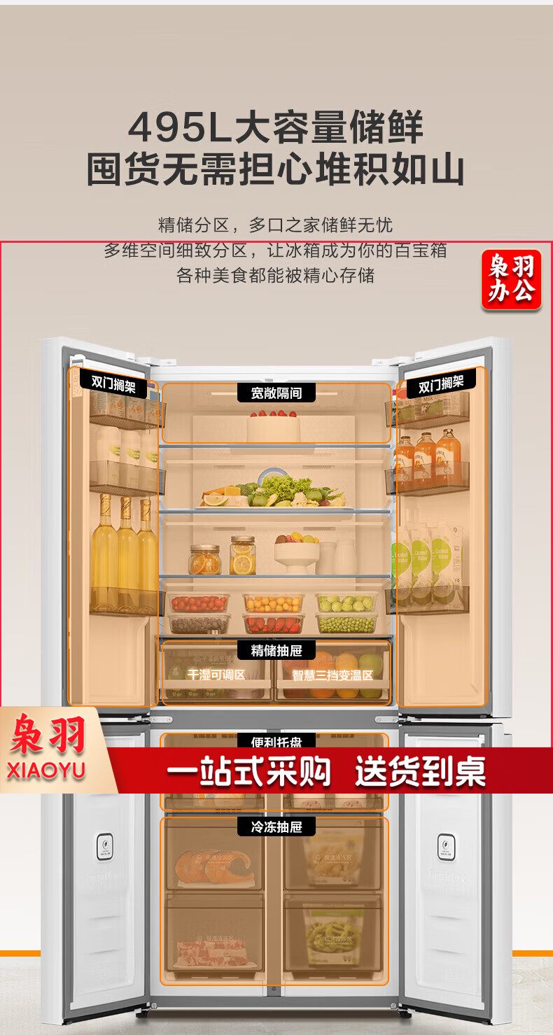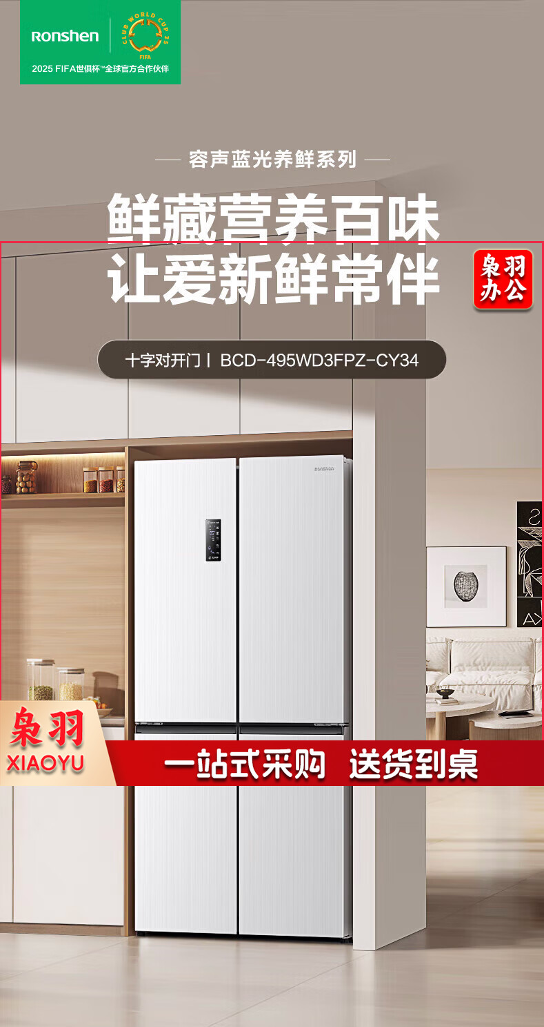 容声(Ronshen)495升十字门四门冰箱一级能效 变频风冷无霜大容量双系统双循环BCD-495WD3FPZ