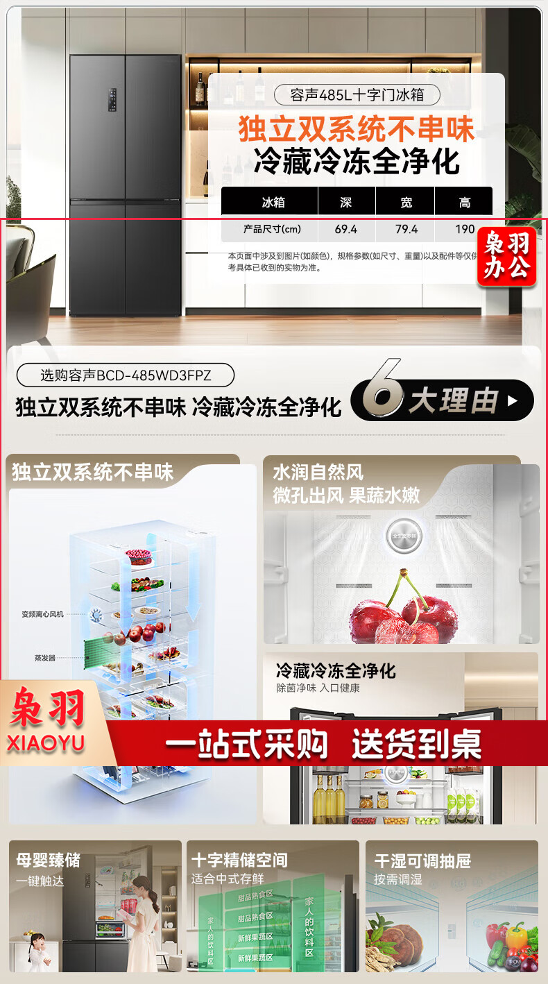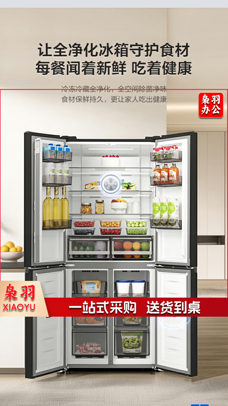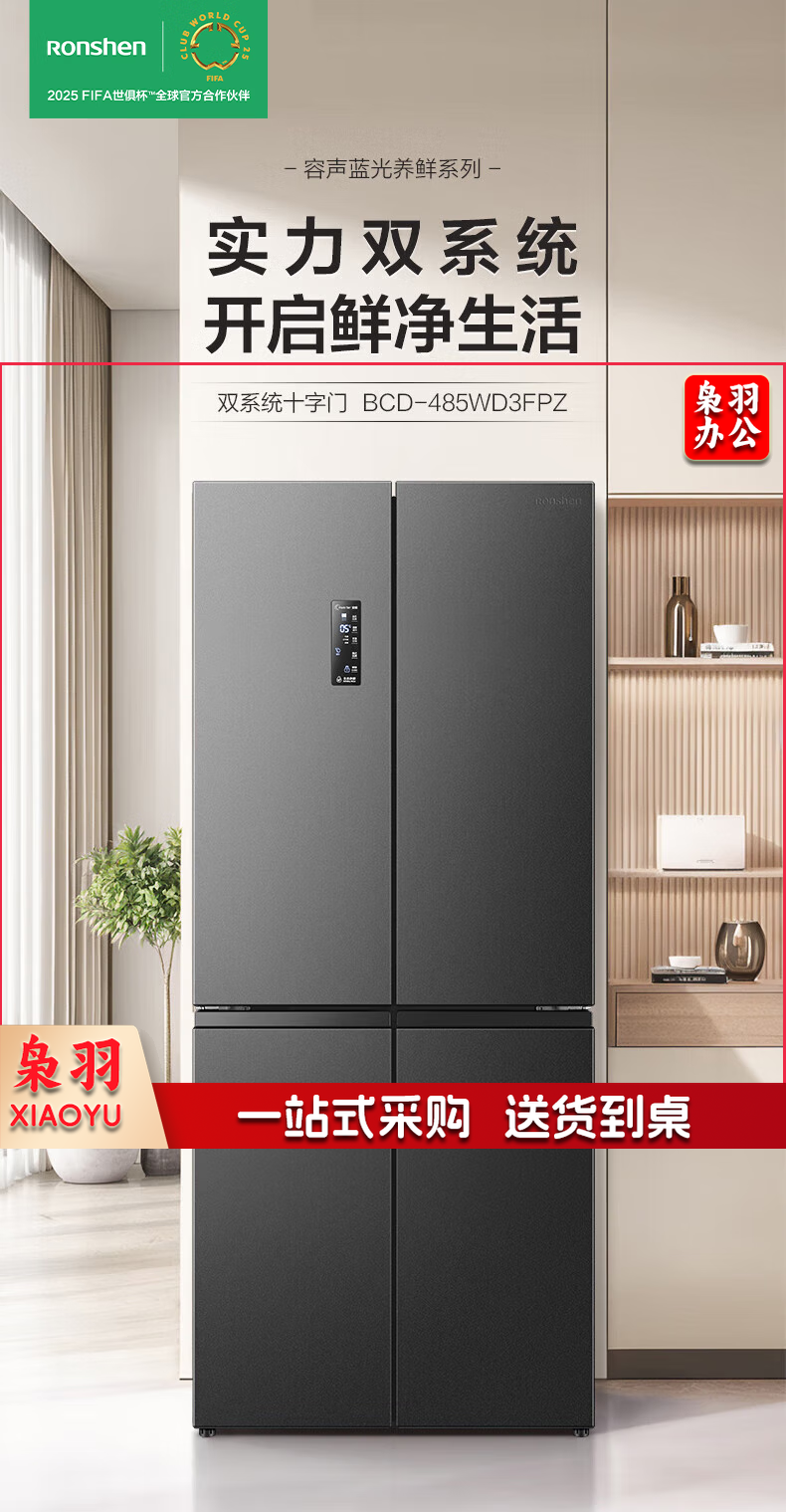 容声(Ronshen)485升十字四开门超薄冰箱一级能效变频双系统节能家用大容量 BCD-485WD3FPZ