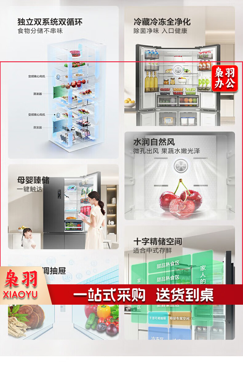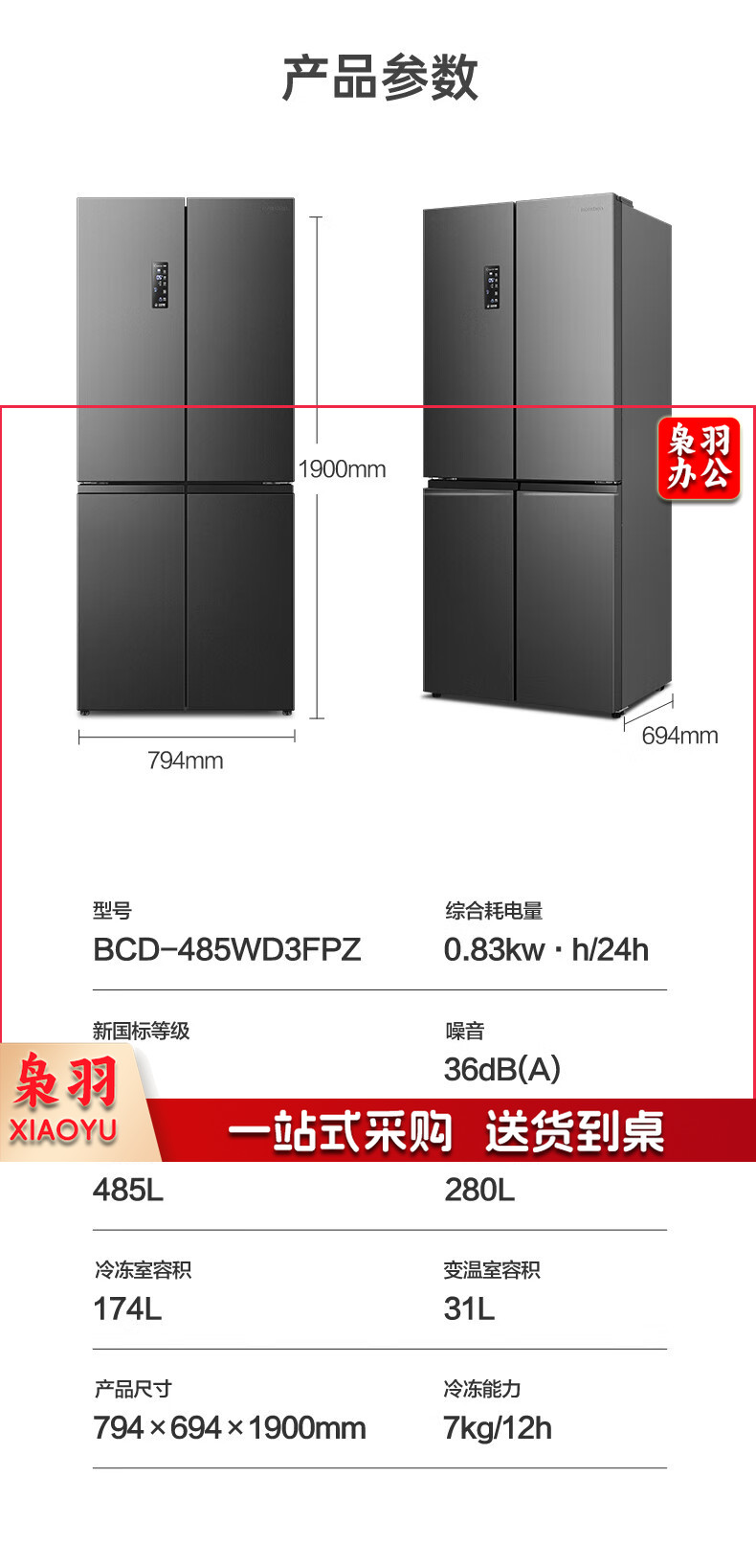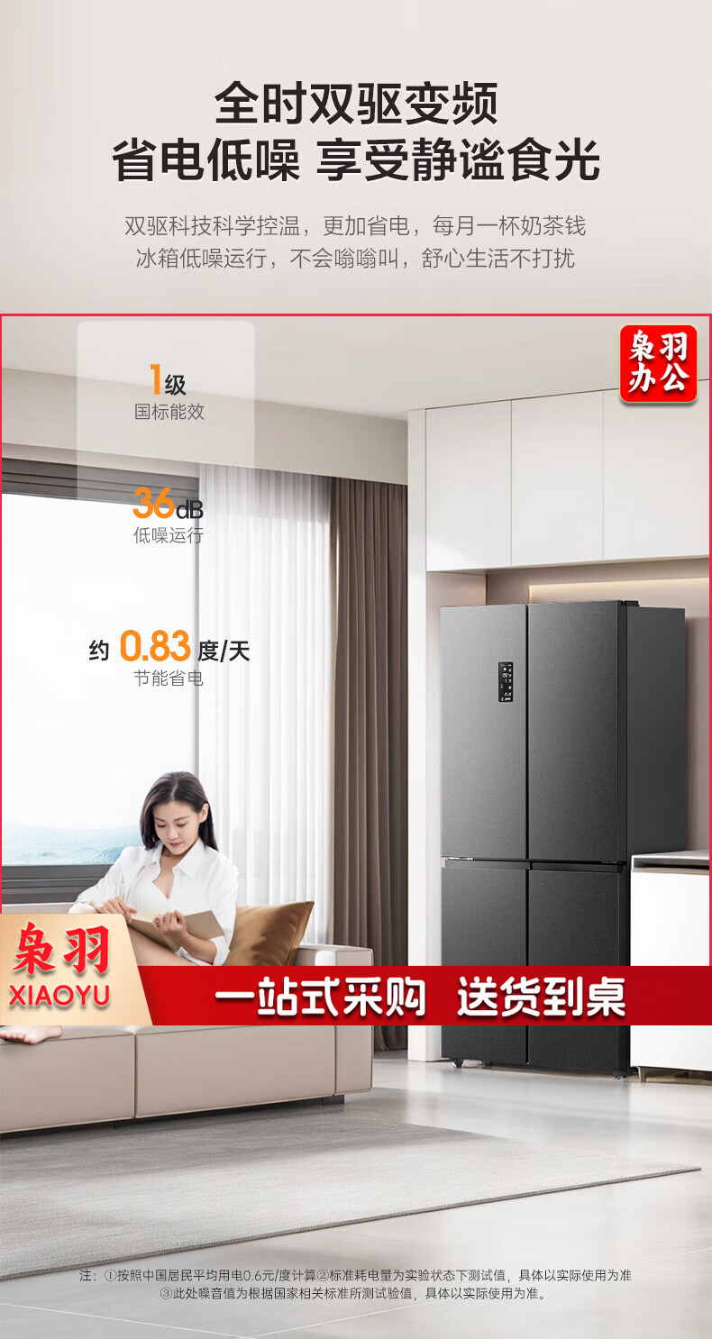 容声(Ronshen)485升十字四开门超薄冰箱一级能效变频双系统节能家用大容量 BCD-485WD3FPZ