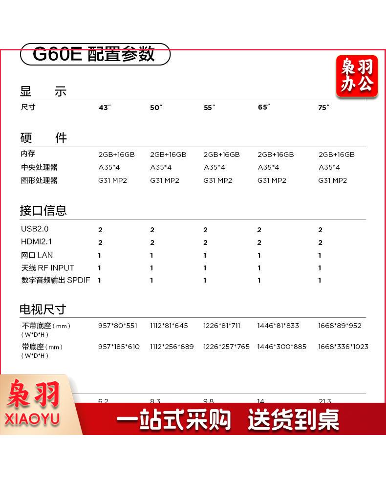 TCL 50G60E 50英寸 4K超高清电视 2+16GB 双频WIFI 远场语音支持方言 商用电视 zxk-240102113001