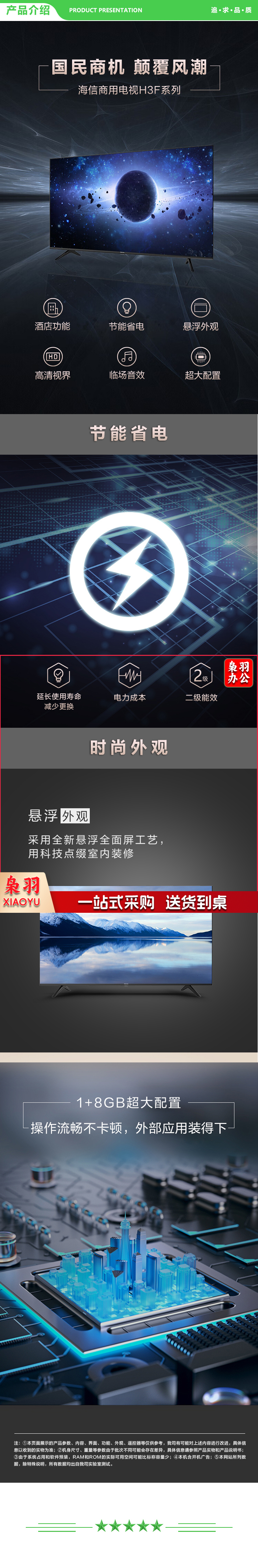 海信(Hisense)43H3F 43英寸 高清平板 1+8GB大内存 悬浮全面屏工艺电视