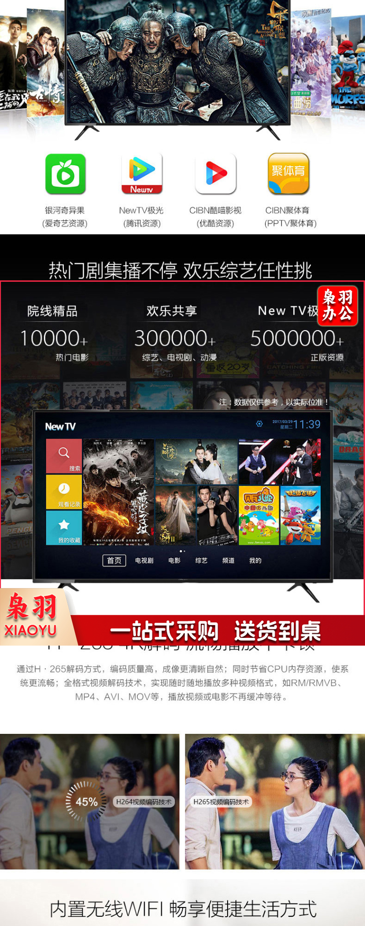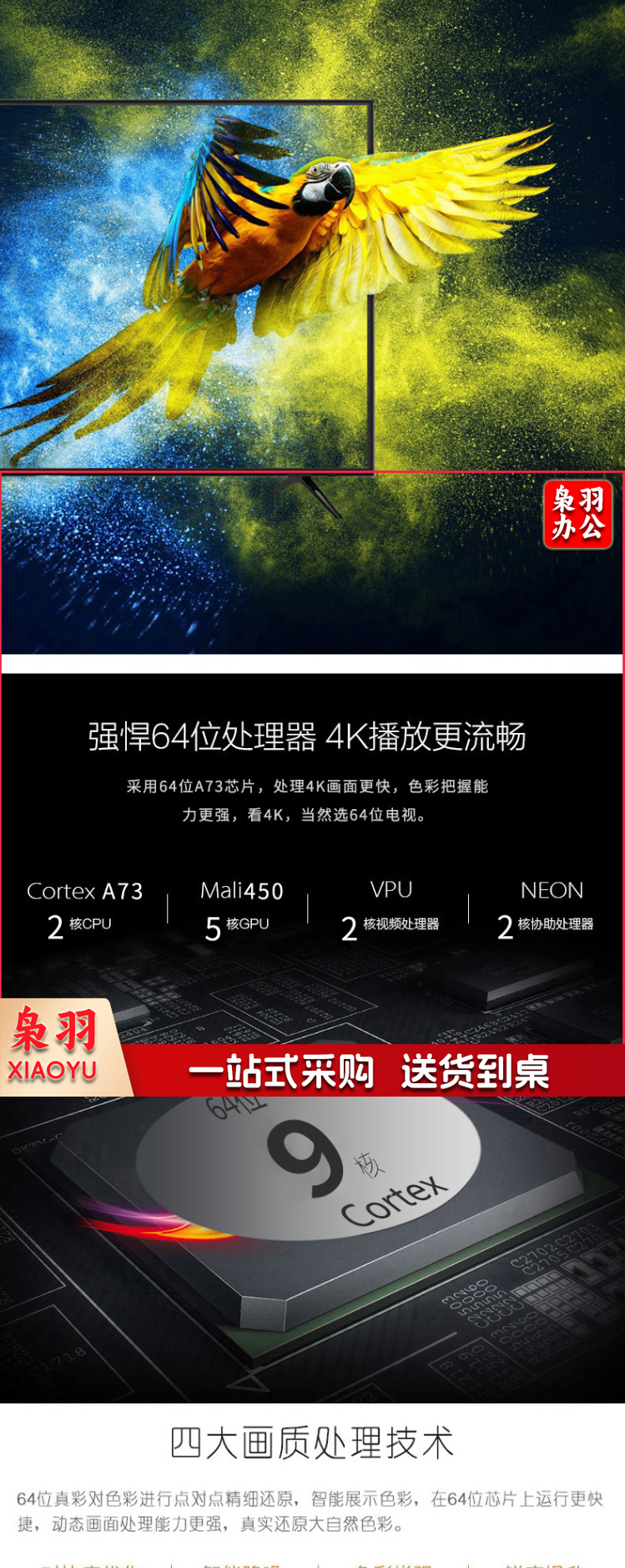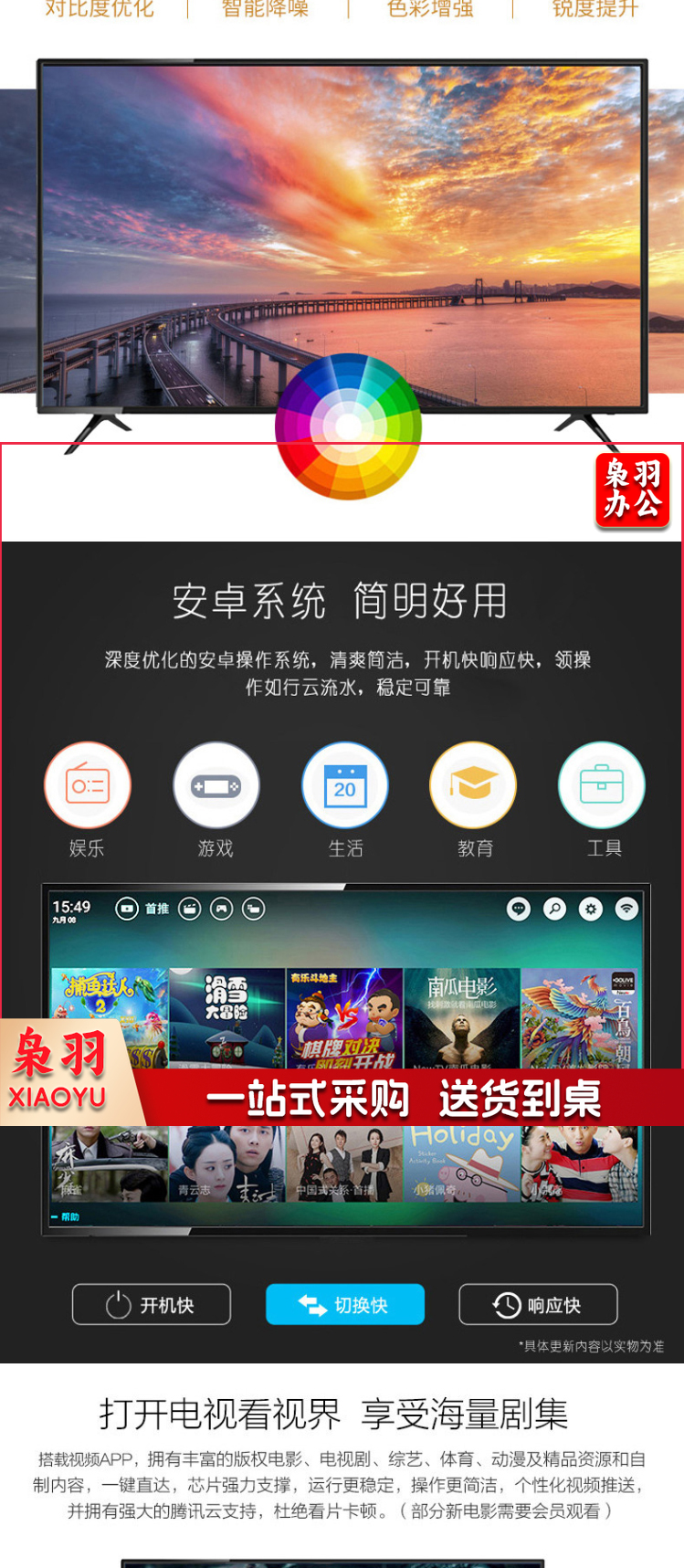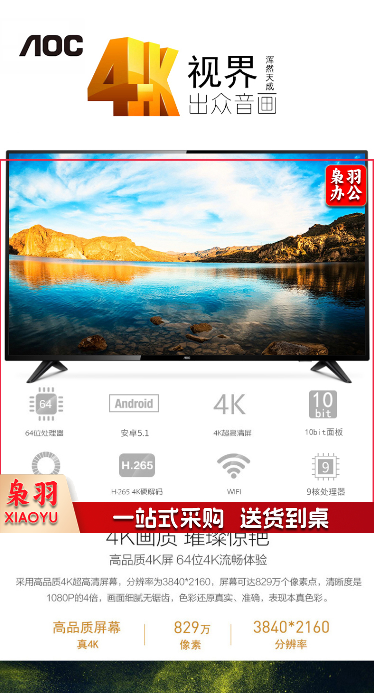 AOC电视 H65P3 65英寸 4KHDR超高清 安卓9.0 全面屏 人工智能 网络液晶平板电视