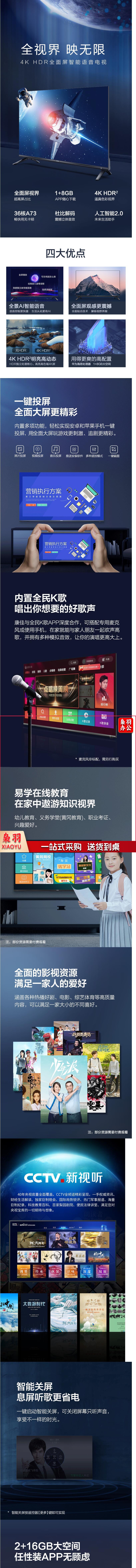 康佳(KONKA)55英寸 LED55G300E 全面屏4K超高清智能电视 黑色