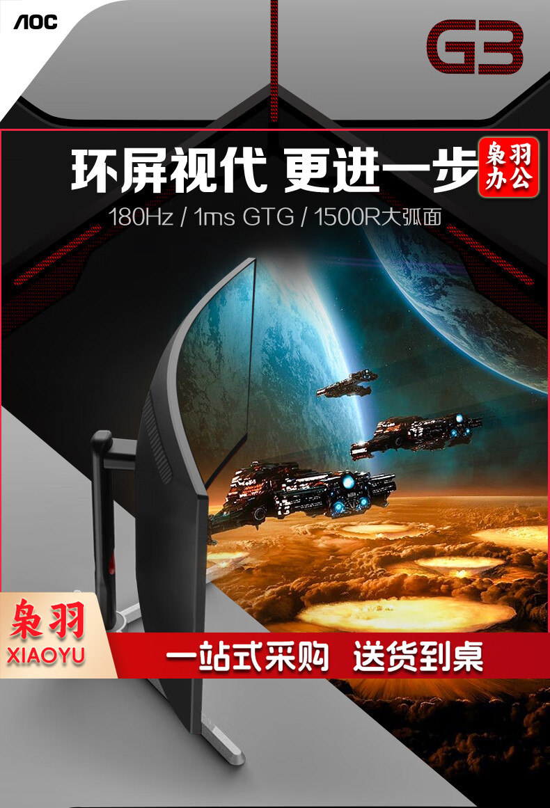 AOC CU34G3X 34英寸 带鱼屏 WQHD 广色域 180Hz HDR10 出厂校色 旋转升降 21:9曲面电竞电脑显示器 CU34G3