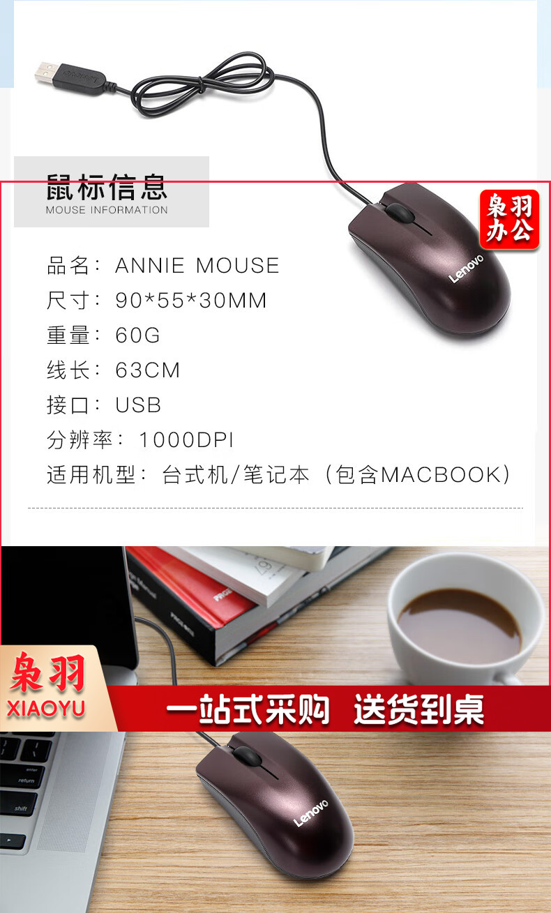 联想(Lenovo)鼠标笔记本电脑有线鼠标办公家用苹果