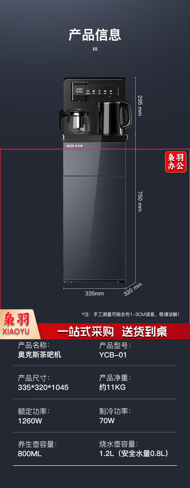 奥克斯茶吧机 家用温热长效保温 多功能调温数显大屏下置水桶YCB--01
