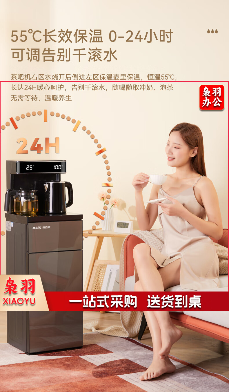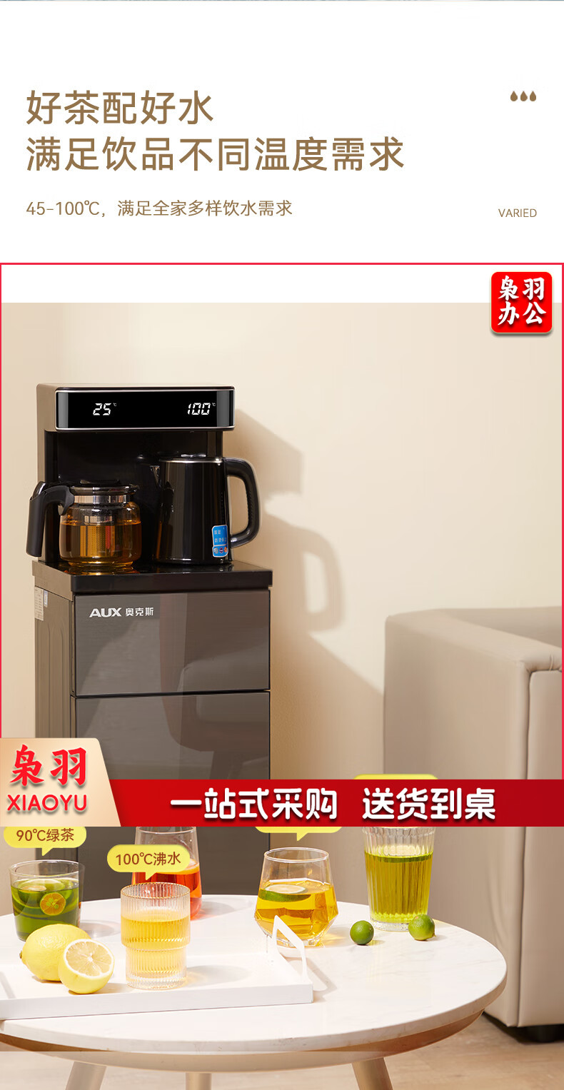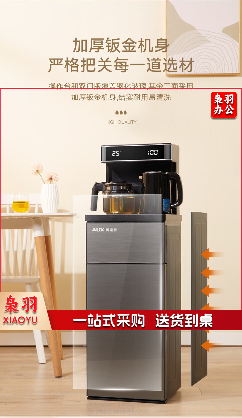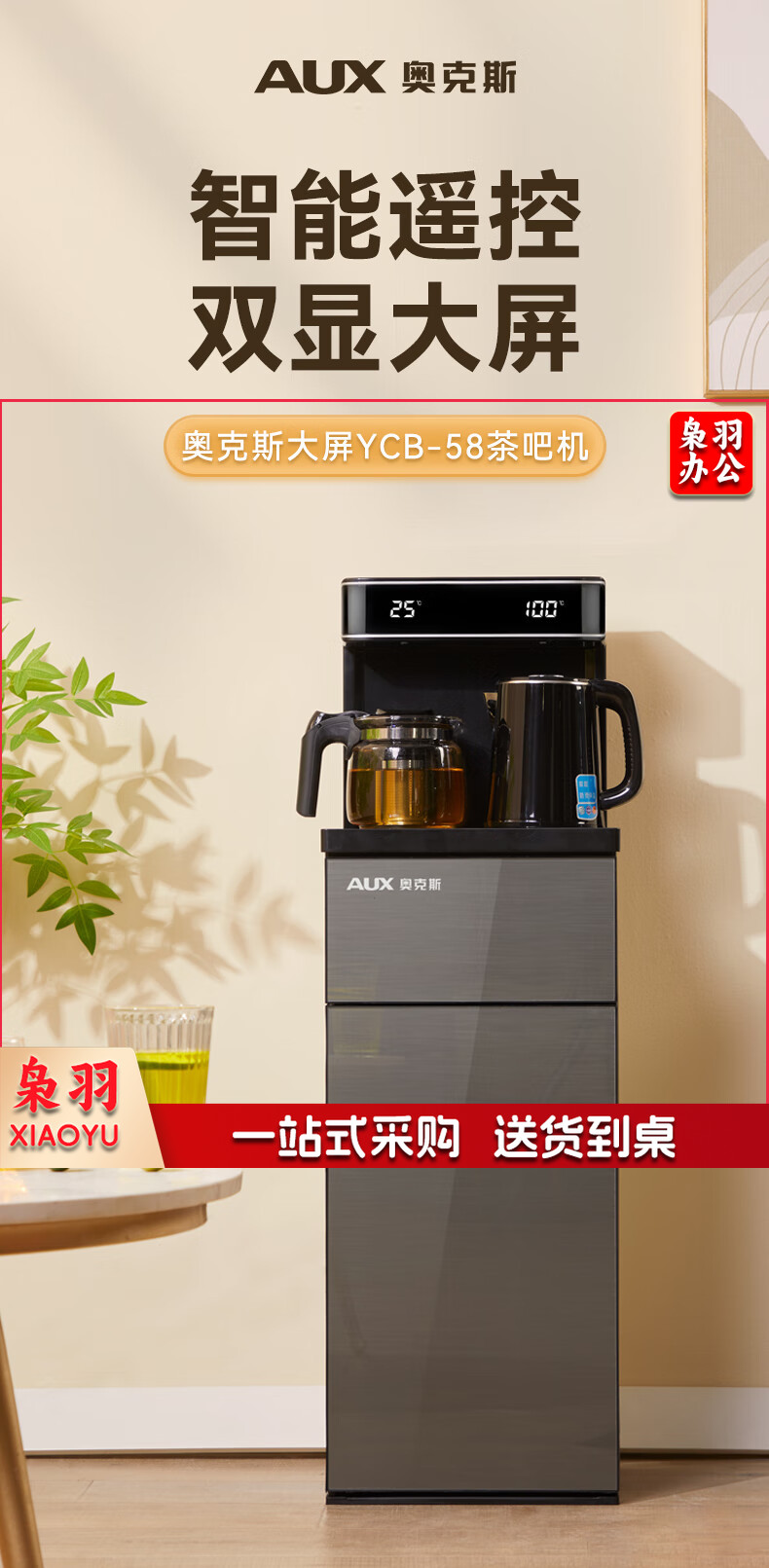 奥克斯(AUX)YCB-58 家用茶吧机大屏下置水桶饮水机 双温双显双出水口 立式智能遥控茶吧机温热款