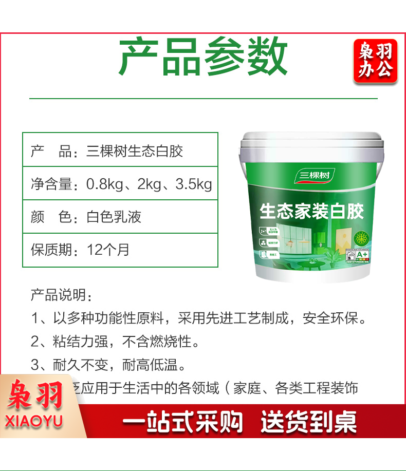 三棵树生态白胶水性健康白乳胶强力胶高粘力板材家具木工手工 环保型白胶净重15kg