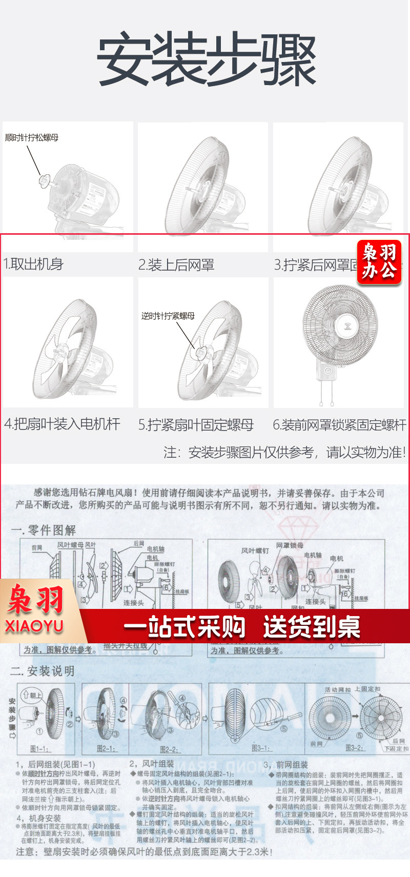 钻石牌 18寸壁扇挂壁式电风扇摇头静音餐厅电扇大风力工业挂扇