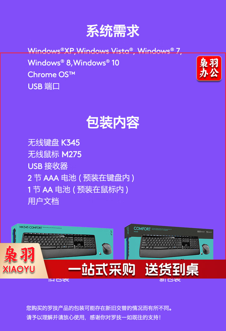 罗技(Logitech) MK345无线办公键鼠套装 防泼溅设计 全尺寸 多媒体键鼠套装 企业采购 【键鼠套装+WPS教程卡套餐】MK345黑灰色