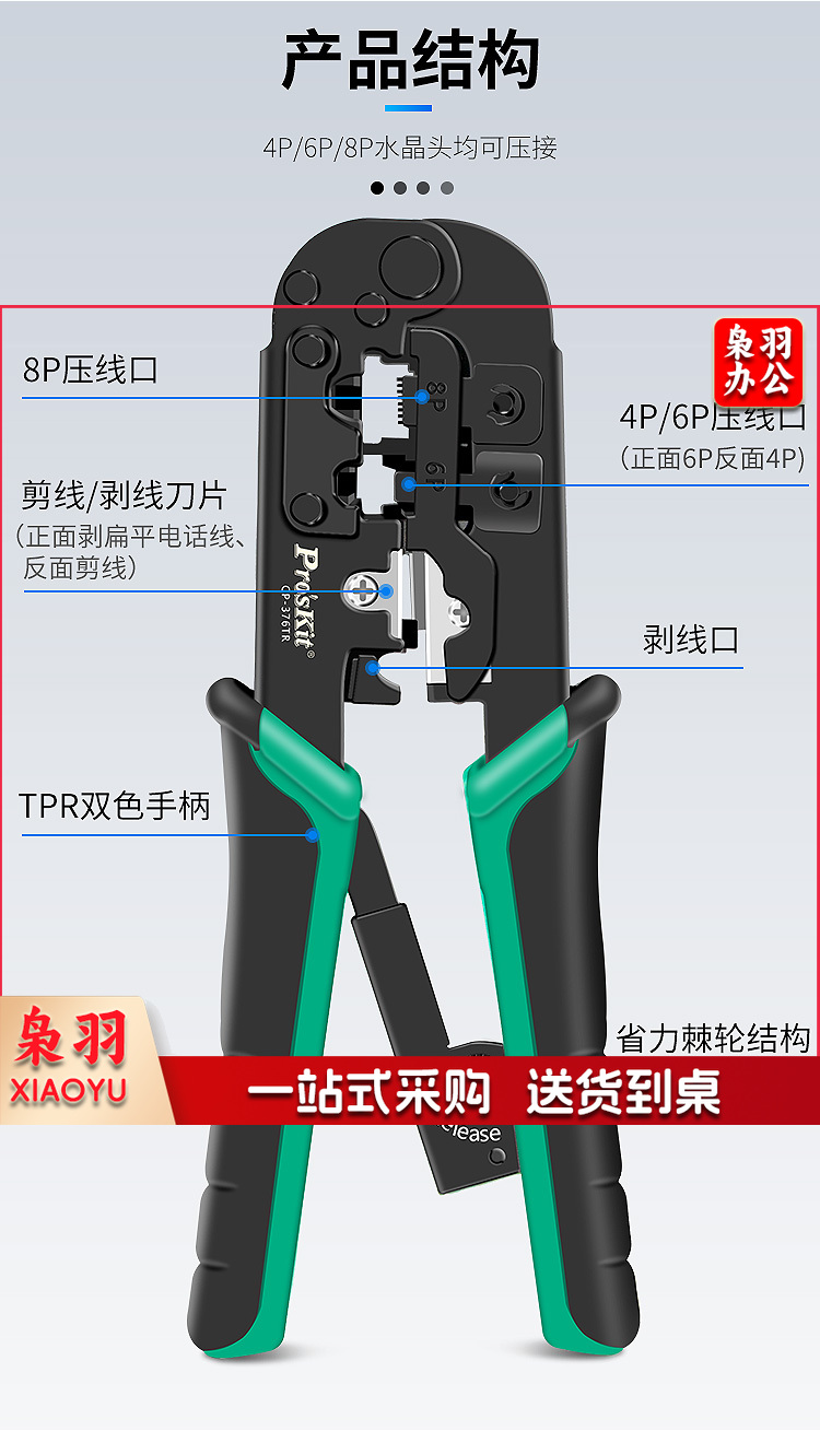 宝工 CP-376TR网络网线钳电话线水晶头压线钳三用进口468P(专业级)