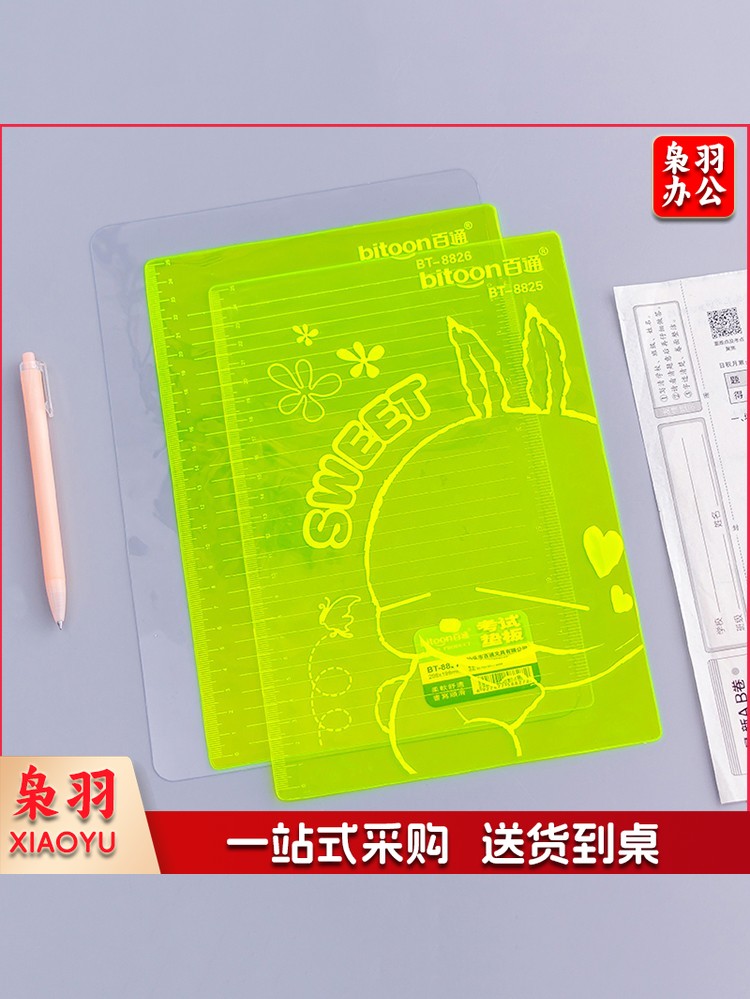 透明书写垫板加厚横线垫本荧光绿色