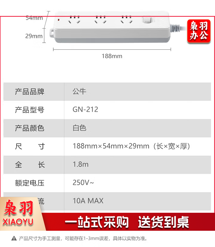 公牛(BULL)GN-212 新国标插座/插线板/插排/排插/接线板/拖线板 3位总控全长3米