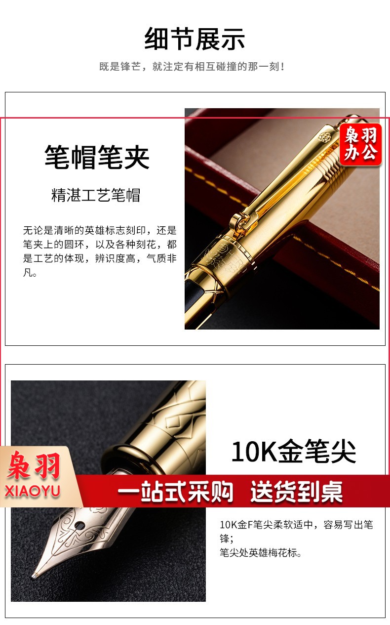 HERO/英雄钢笔10k金笔2065官方正品保证男士商务高档经典依金笔精致礼物礼盒装复古私人订制刻字logo
