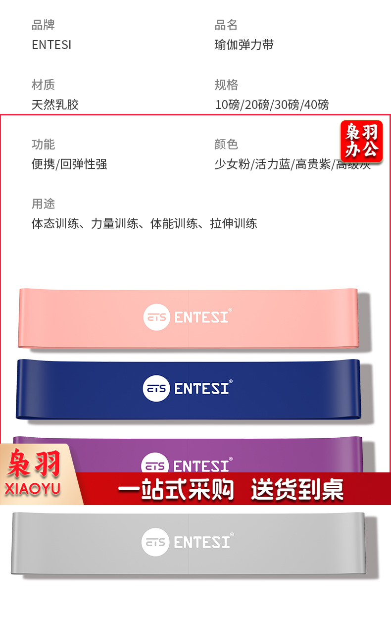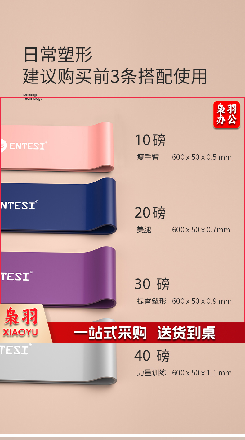 弹力带健身阻力带力量训练深蹲神器瑜伽翘臀拉力带(10-40磅4条)