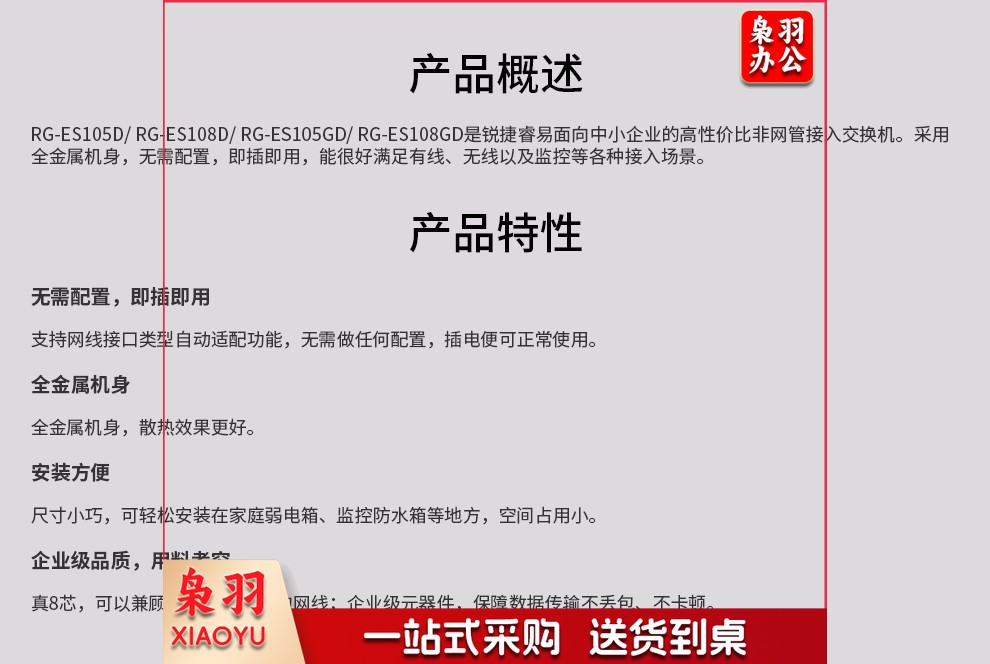 锐捷(Ruijie)RG-ES105GD 5口千兆非网管企业级交换器