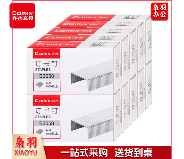 齐心(Comix)订书钉 12#订书针 1000枚/盒 10盒装 办公文具 工具 5盒起订