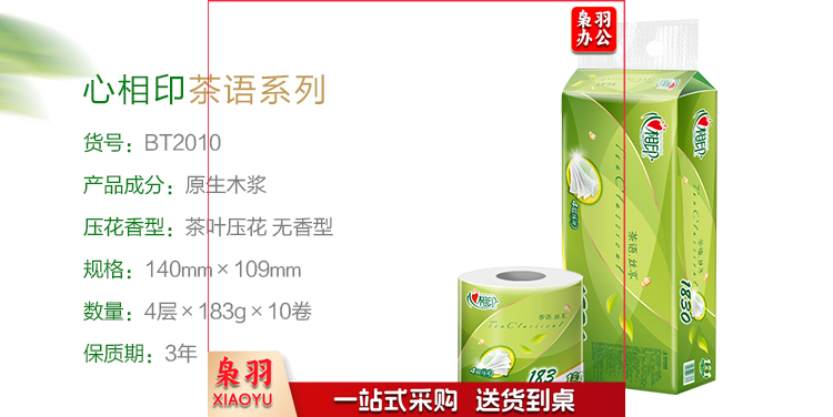 心相印 BT2010 茶语丝享183克10粒装四层茶叶压花卷筒卫生纸