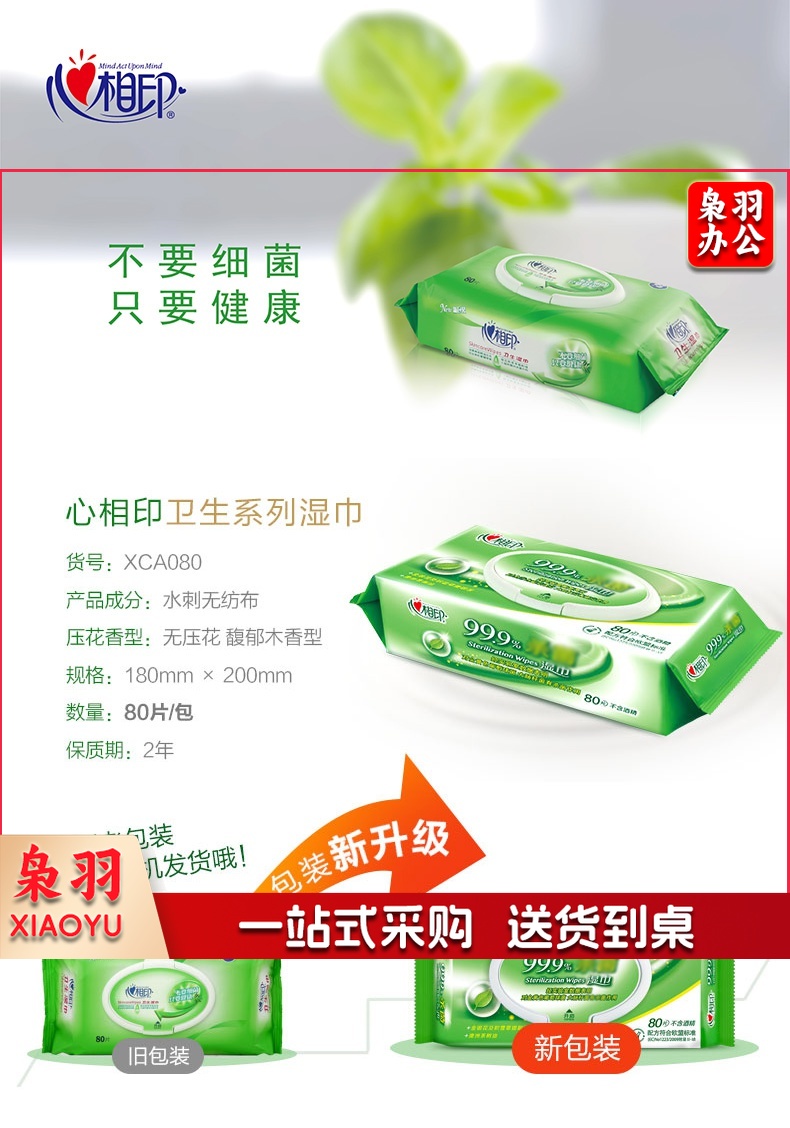 心相印湿巾卫生消毒湿巾 XCA080 一包80片 家庭学生便携随身装清洁99.9%杀菌湿巾