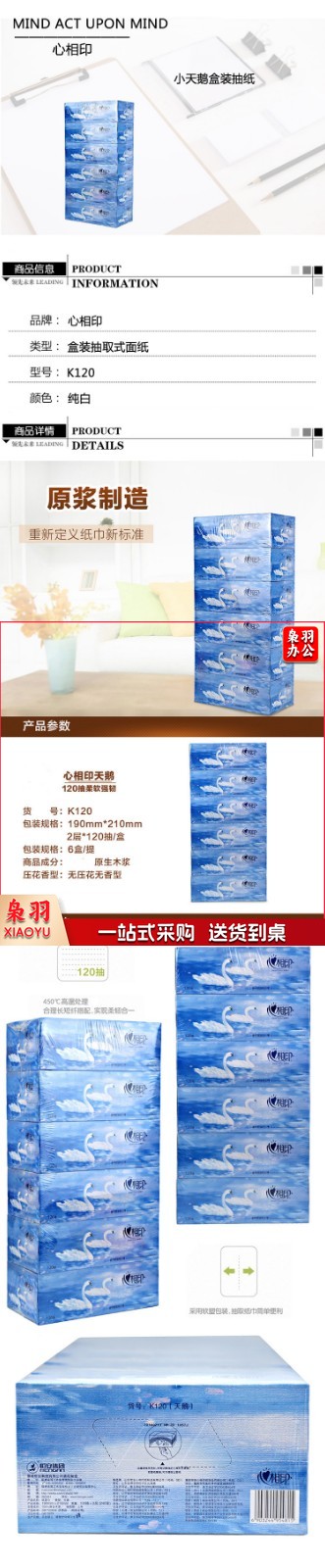 心相印 K120 盒装抽纸小天鹅 120抽 6盒/提