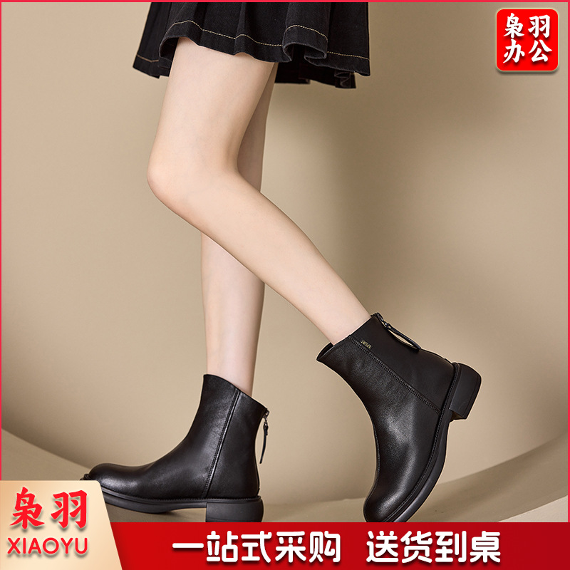2024秋季新品真皮复古马丁靴女韩版后拉链显瘦女靴一脚蹬休闲女鞋