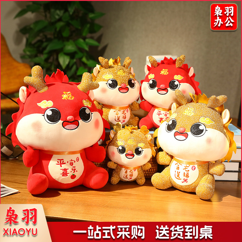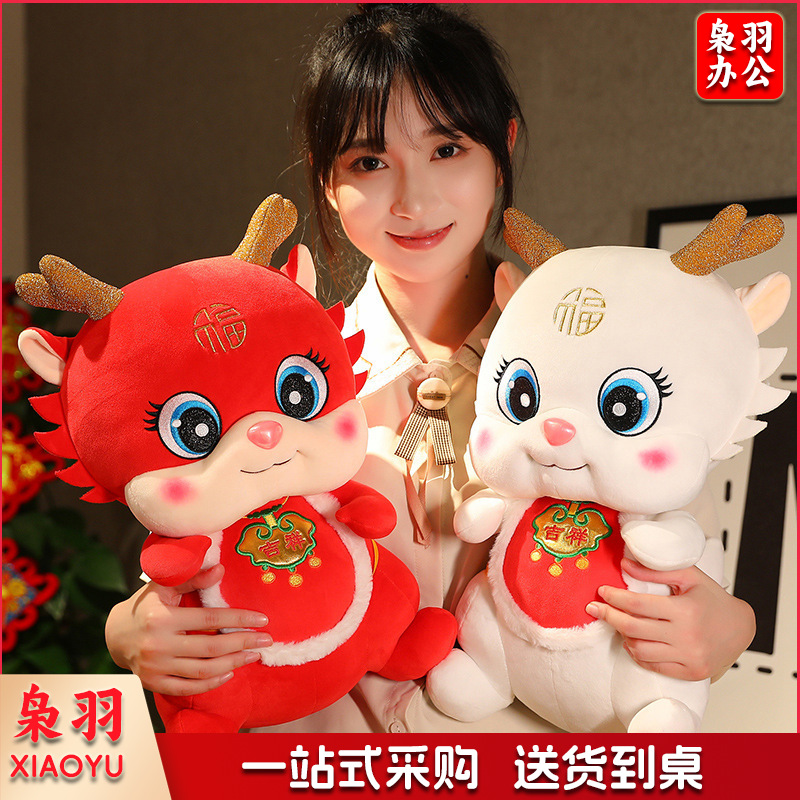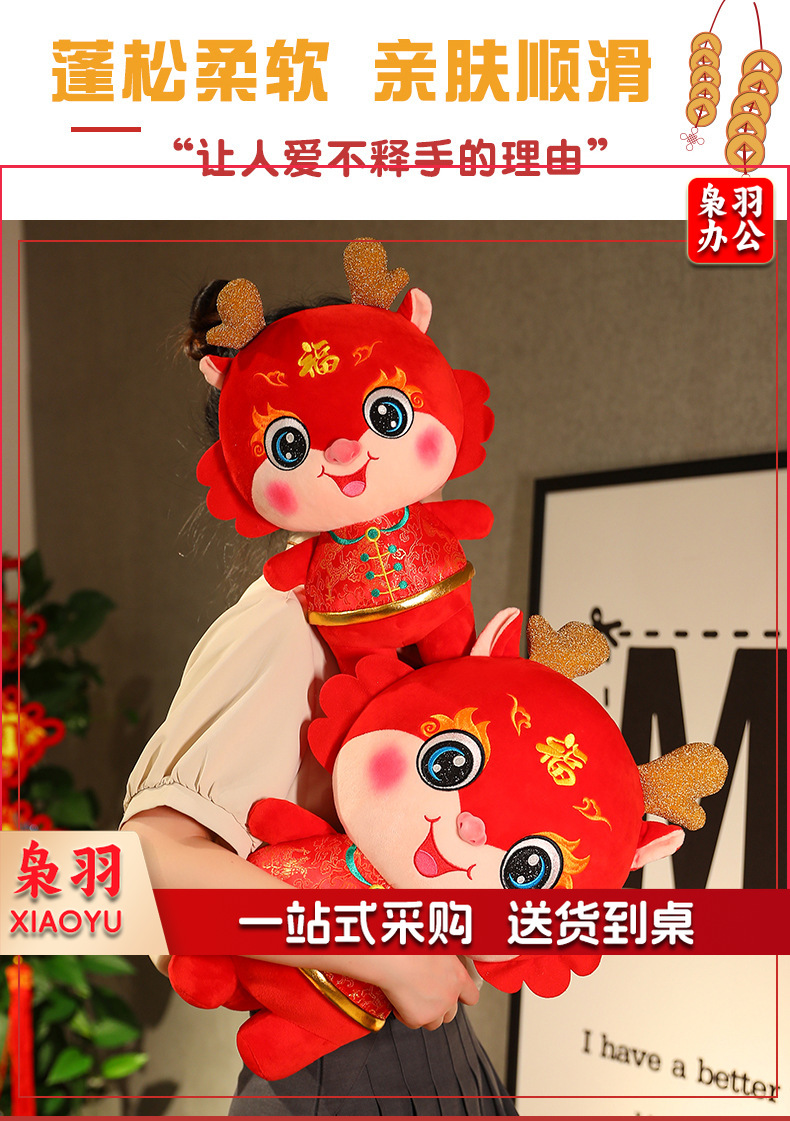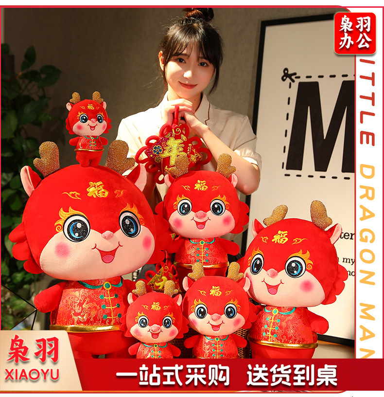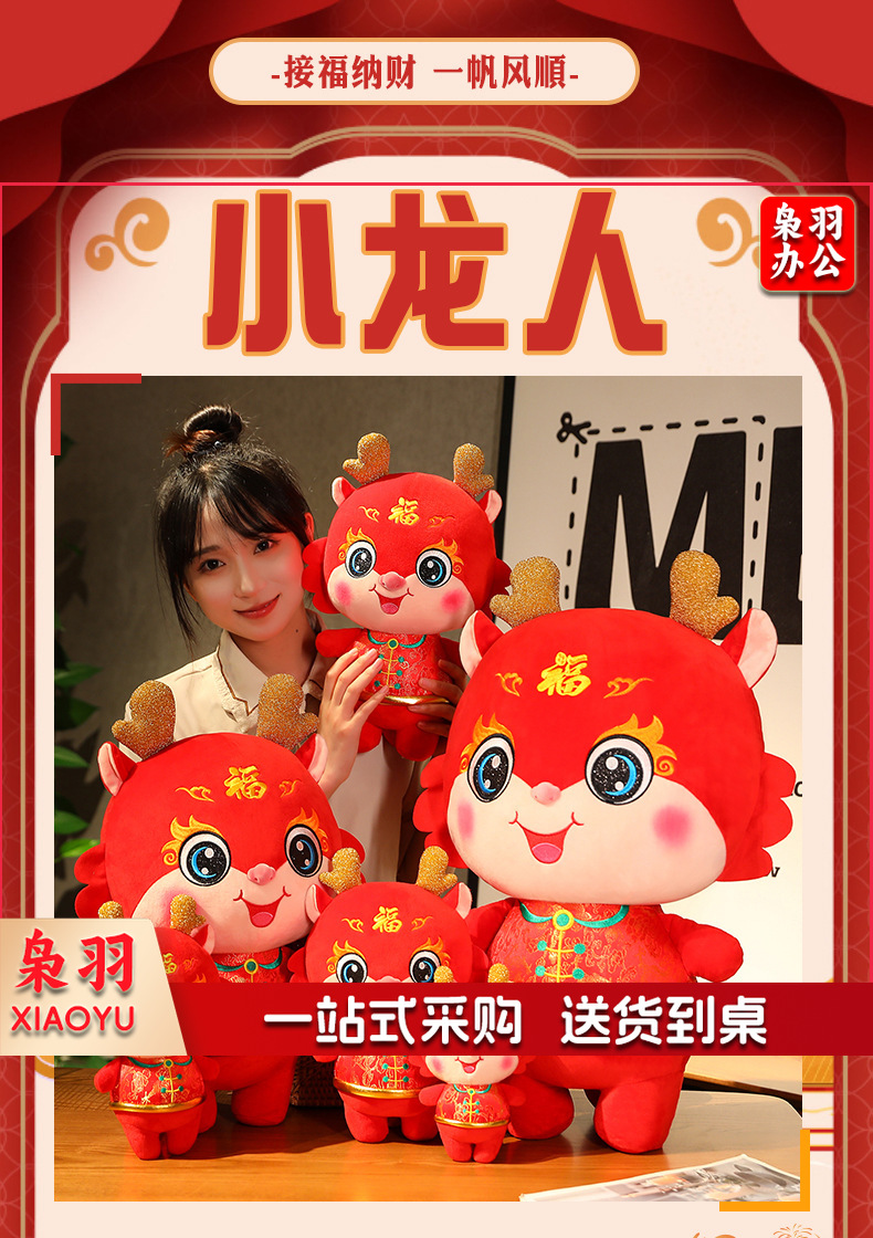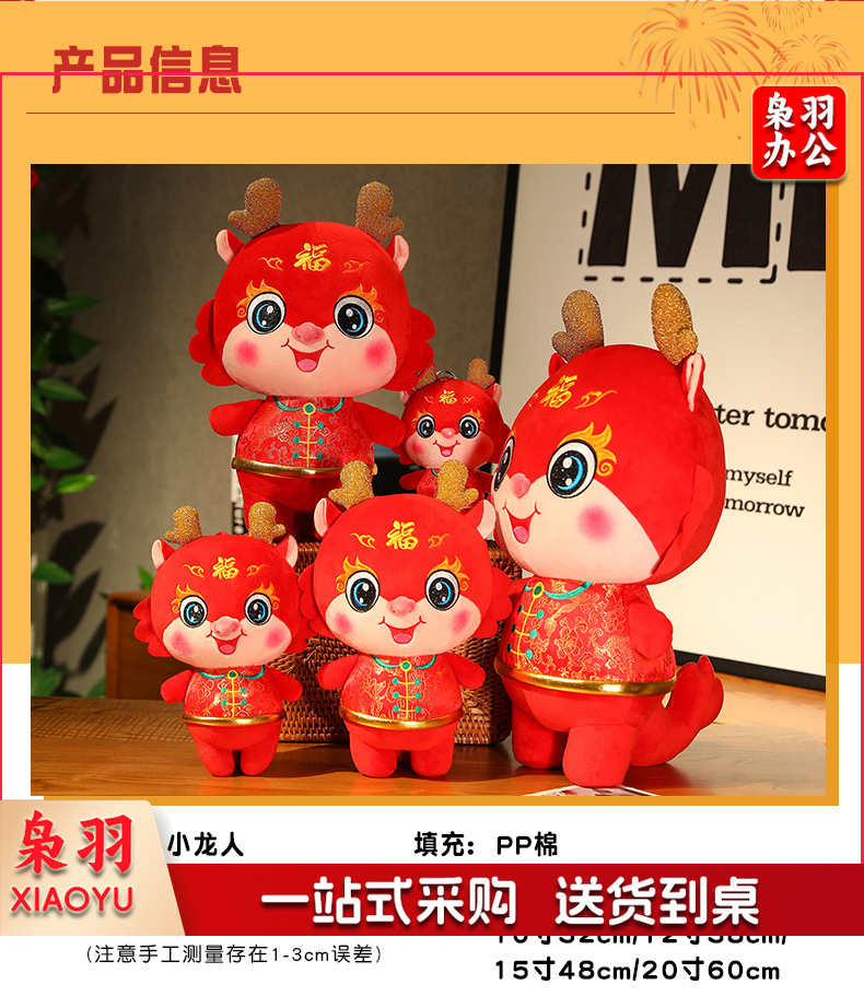 龙年吉祥物毛绒玩具小龙人玩偶布娃娃儿童生肖龙公仔公司年货礼品龙年大吉8寸约24厘米【含龙角】
