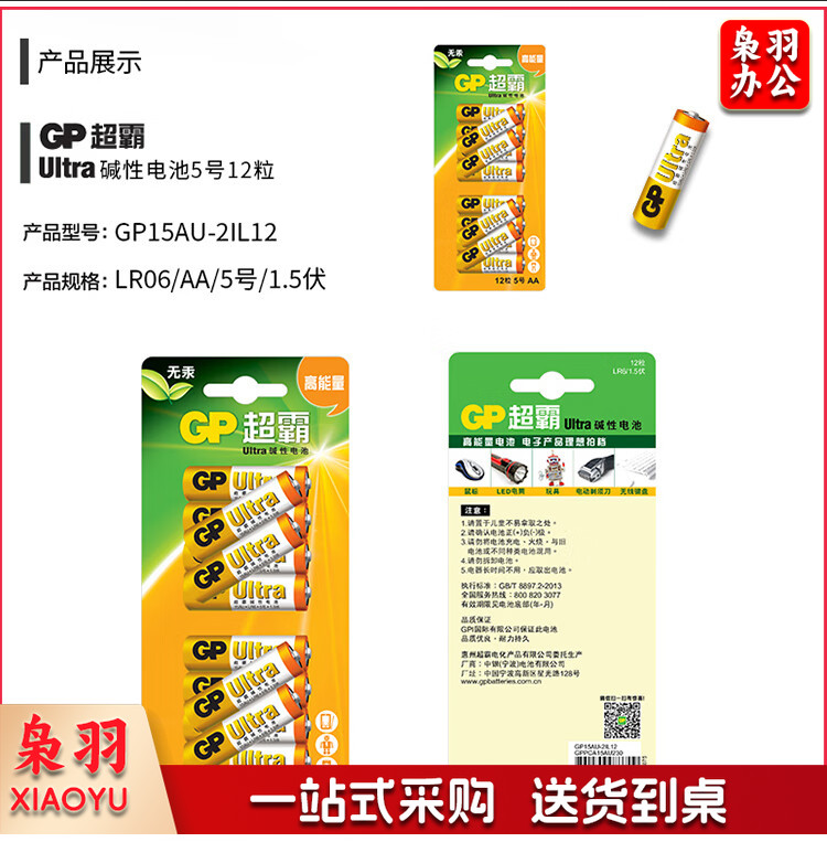 超霸(GP)5号电池12粒 五号碱性干电池 适用于耳温枪/血氧仪/血压计/血糖仪/鼠标等号/AA/R6P