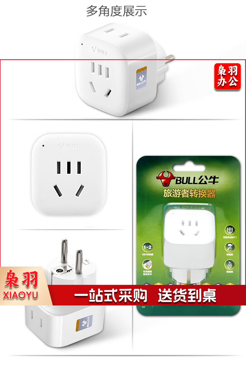 公牛(BULL)GN-L01G插头/2位德标转国标/电源转换器插座/转换插头 适合国外使用