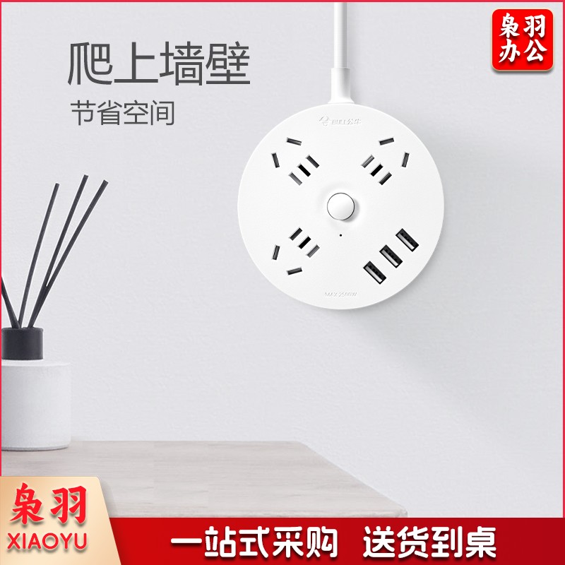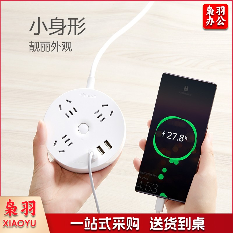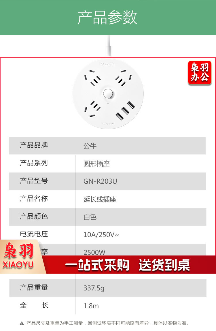 公牛(BULL)GN-R203U 插座/插线板/插排/排插/拖线板 圆形插座 3usb接口+3孔总控 1.8米