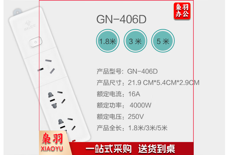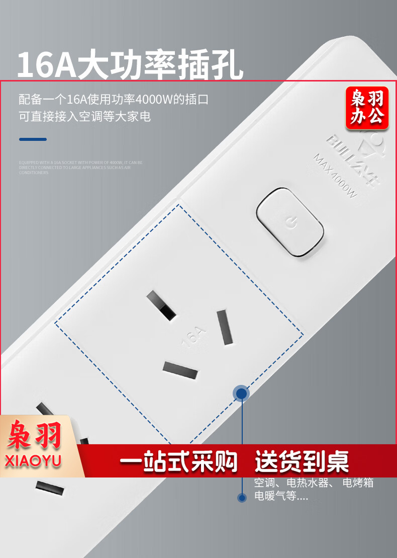 公牛(BULL)GN-406D大功率16A空调专用插座 3插位 接线板排插大孔拖线板 1.8米