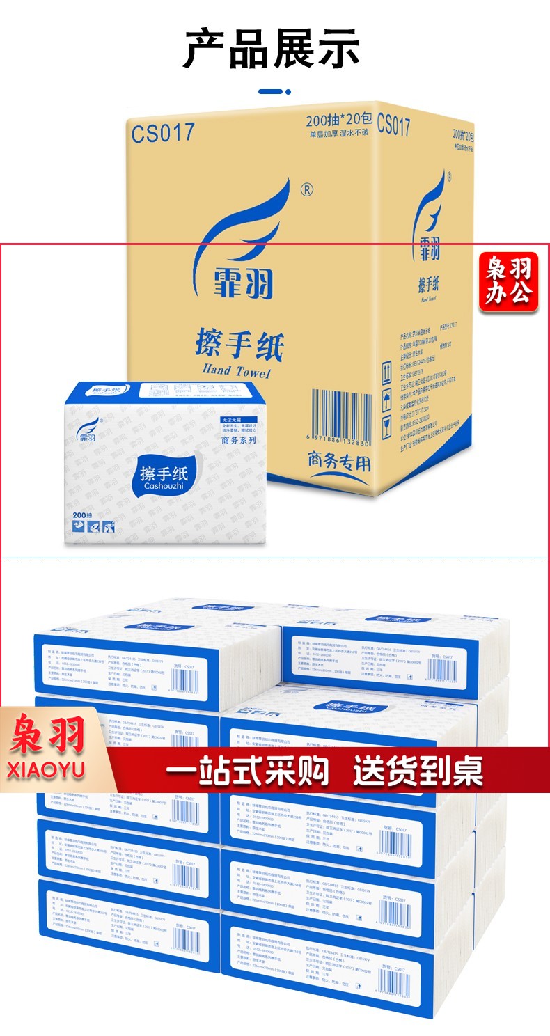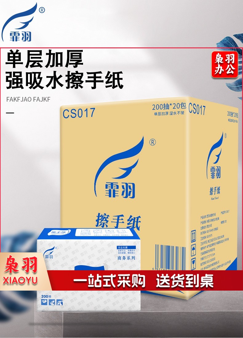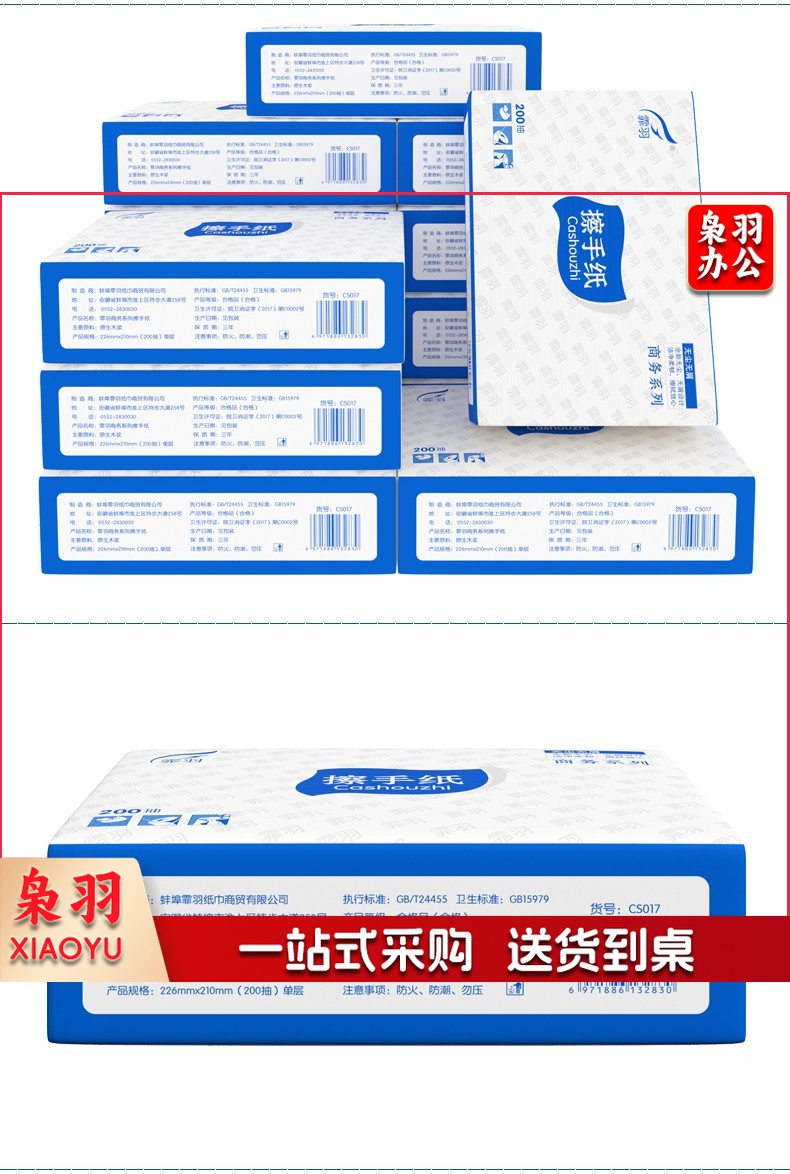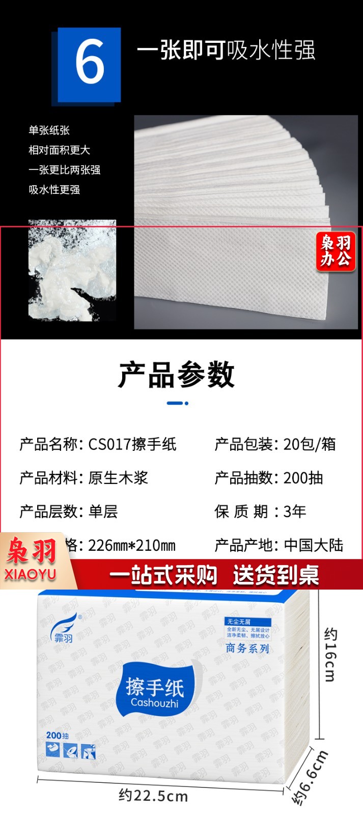 霏羽擦手纸加厚型加大单层200抽20包檫手纸商用卫生纸抽取式抽纸酒店卫生间厨房用纸吸油吸水纸巾CS017