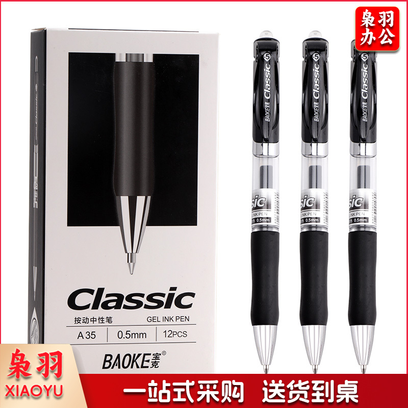 宝克(BAOKE)A35 0.5mm黑色按动中性笔办公签字笔 子弹头水笔12支/盒