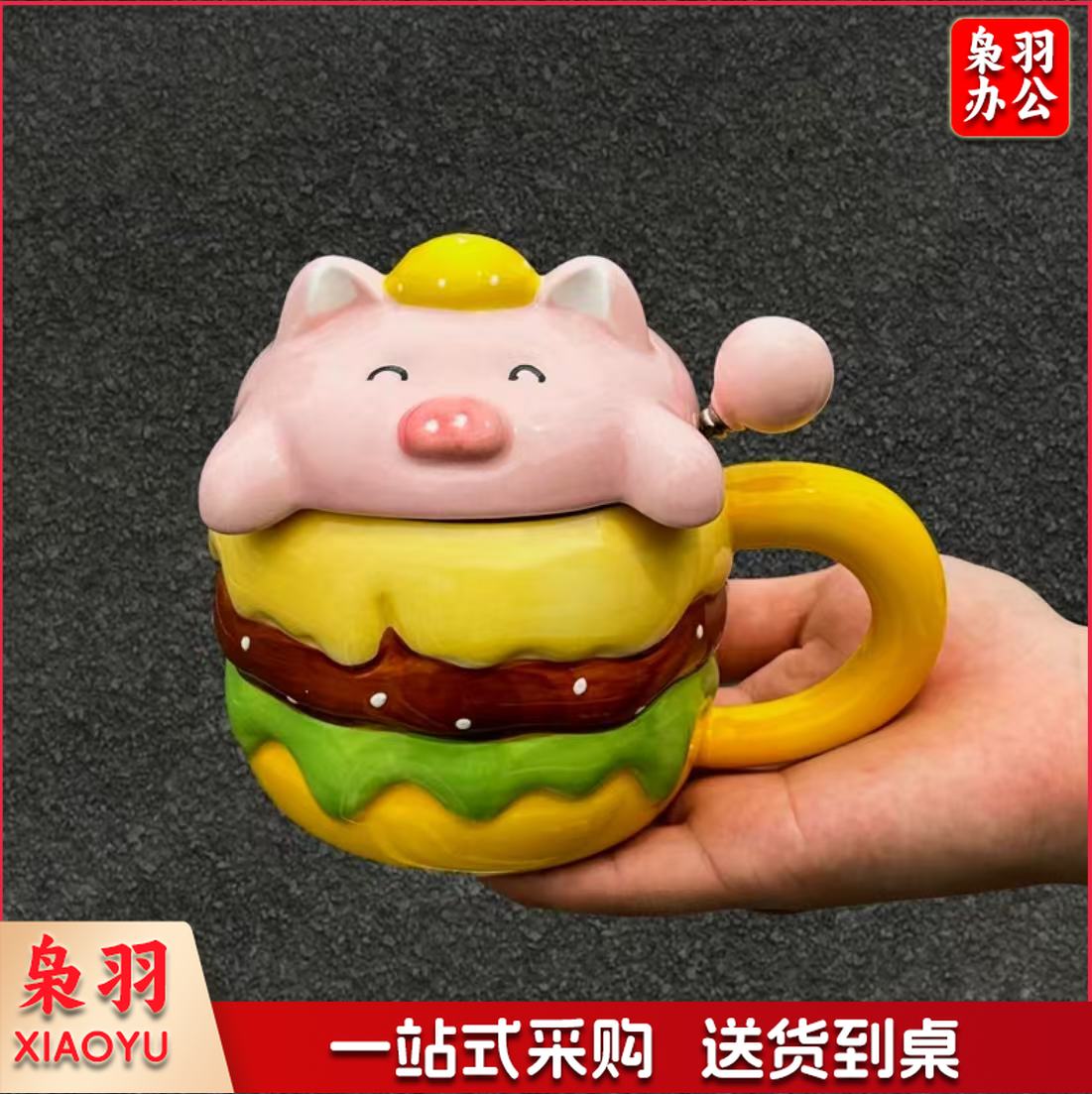 高颜值卡通汉堡陶瓷杯子带盖 实用伴手礼