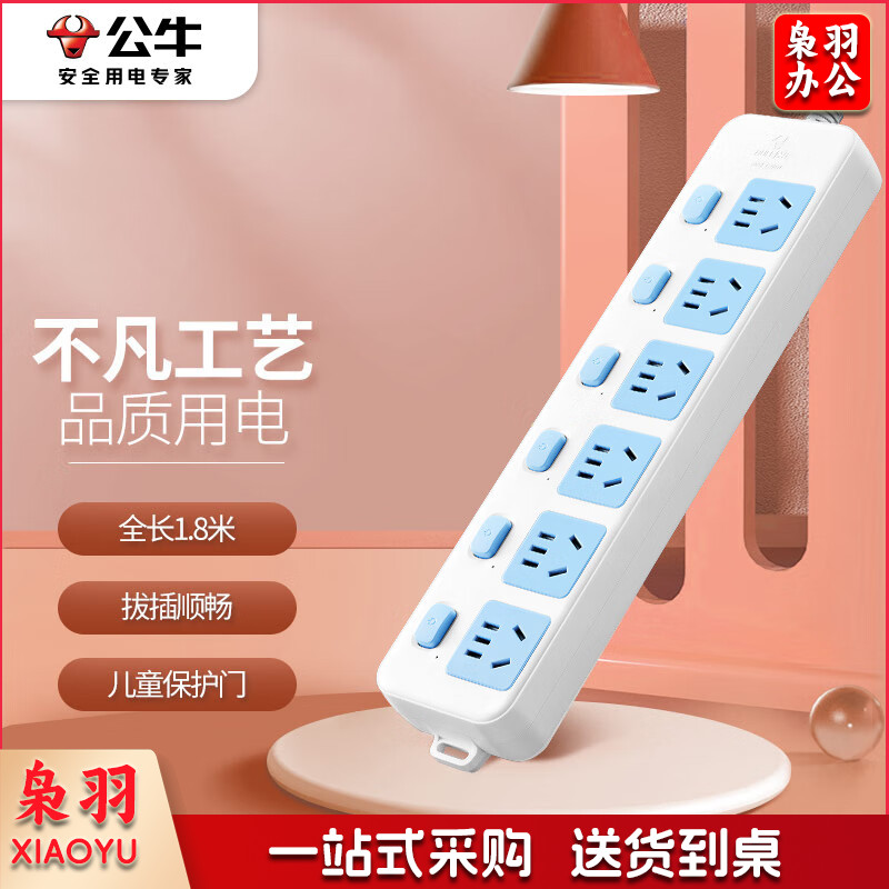 公牛(BULL)新国标插座/插线板/插排6位分控全长1.8米 GN-317