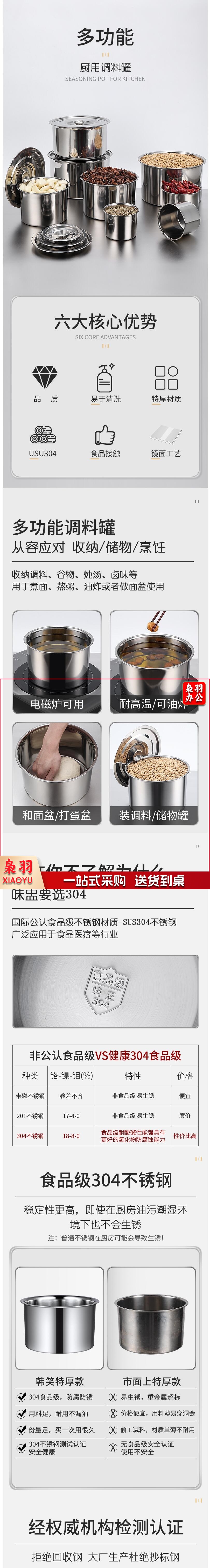 304不锈钢调料罐 调料缸 耐高温调味盅 直径约16cm 高约10cm