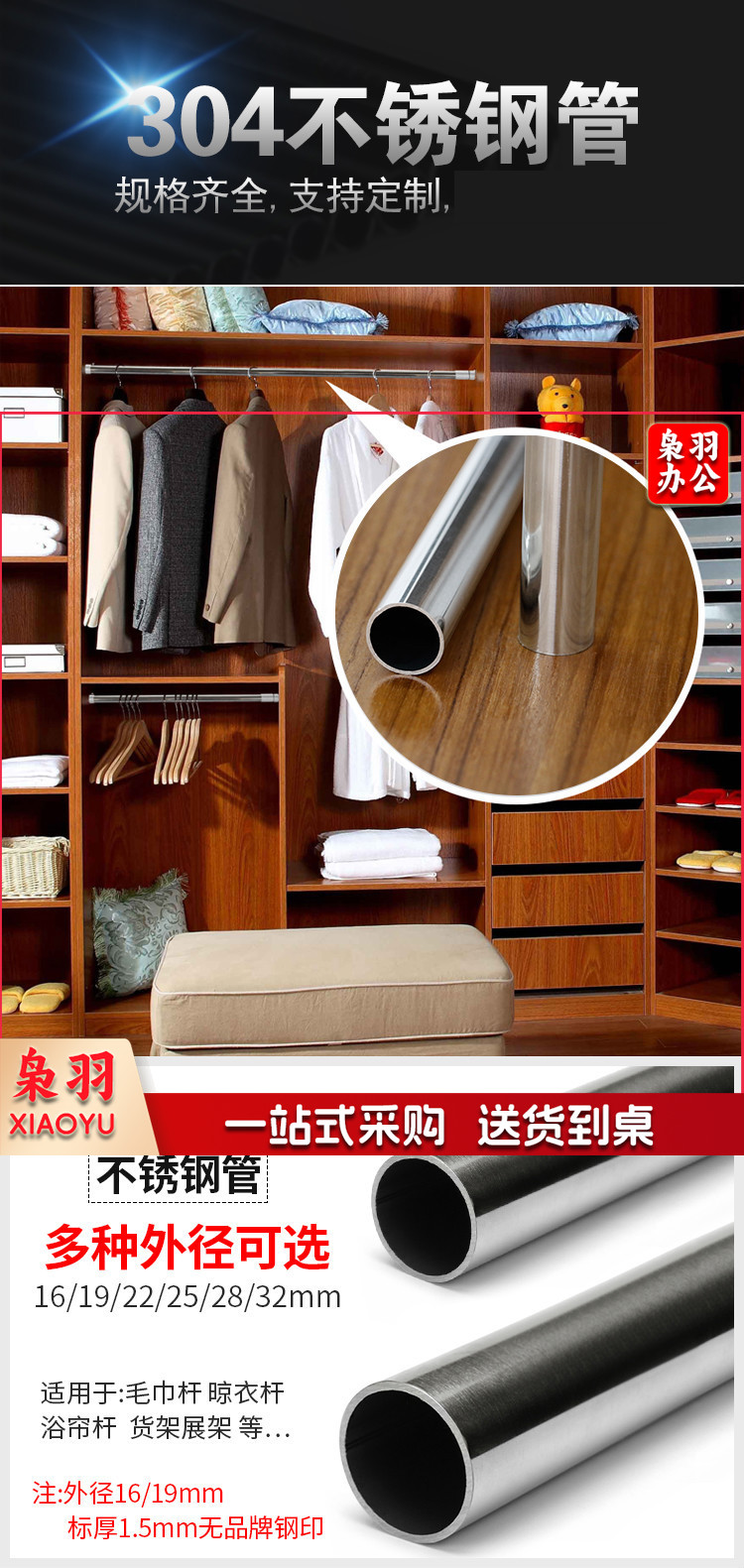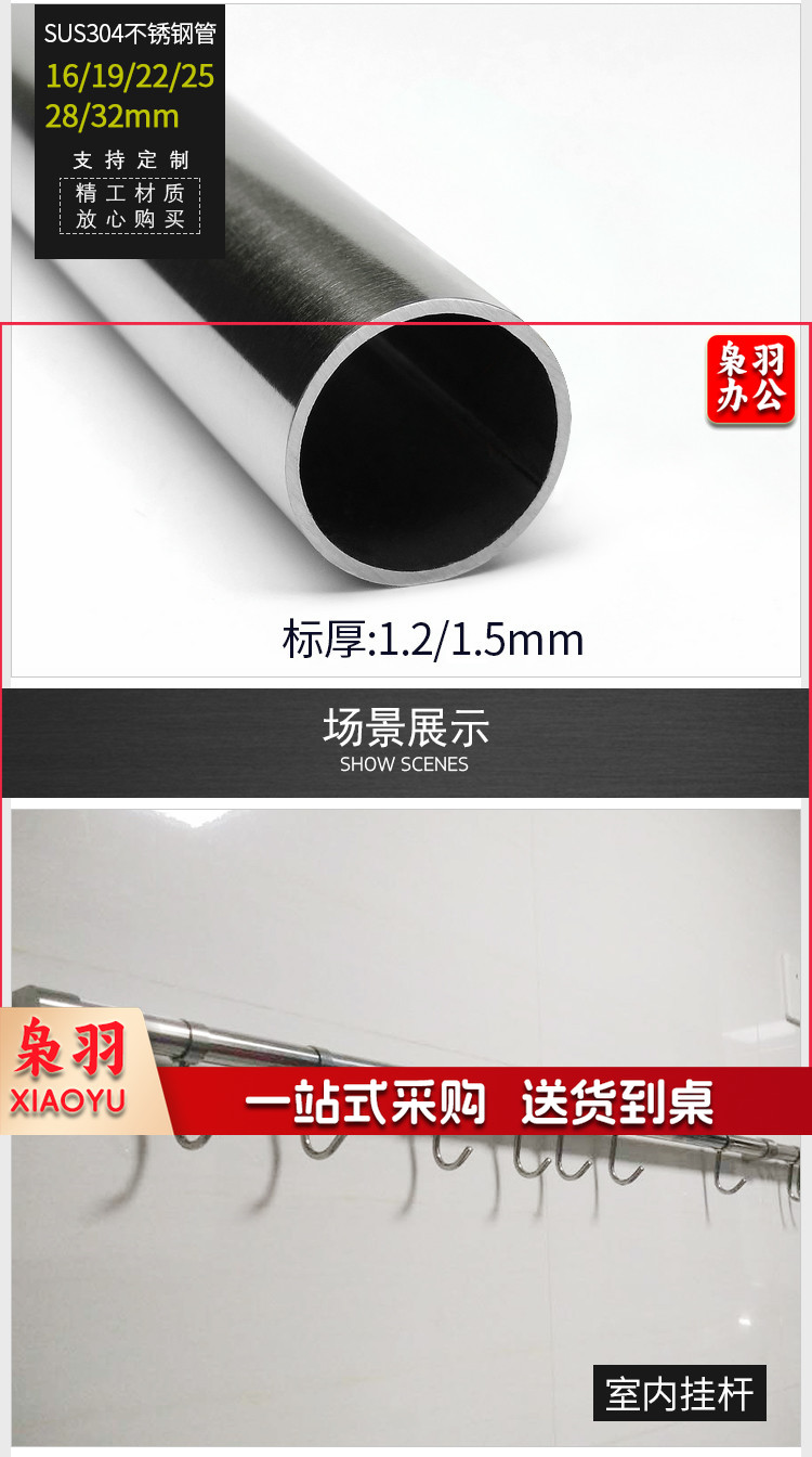 304不锈钢管 晾衣杆 衣柜挂衣通厨房毛巾杆 490*19*1.0mm
