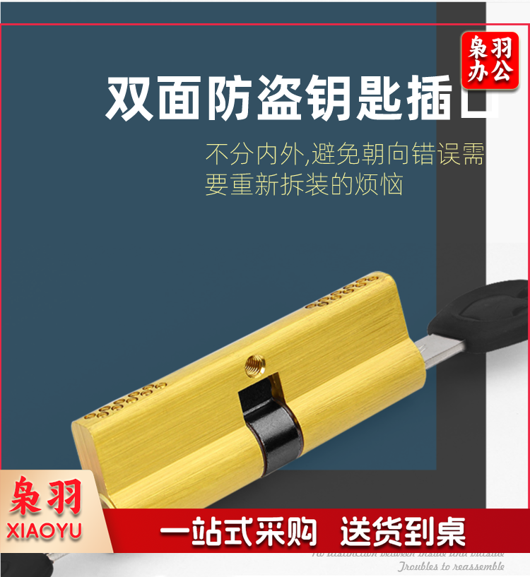防盗门锁芯B级叶片锁芯家用换锁芯大门全铜90通用型六把钥匙进户门B锁芯