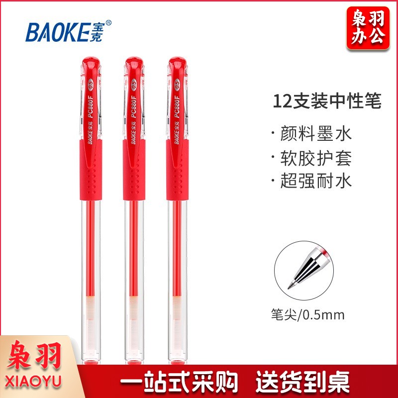 宝克(BAOKE) 0.5mm中性笔 学生考试水笔 商务办公速干签字笔文具 12支/盒 红色水笔0.5mm