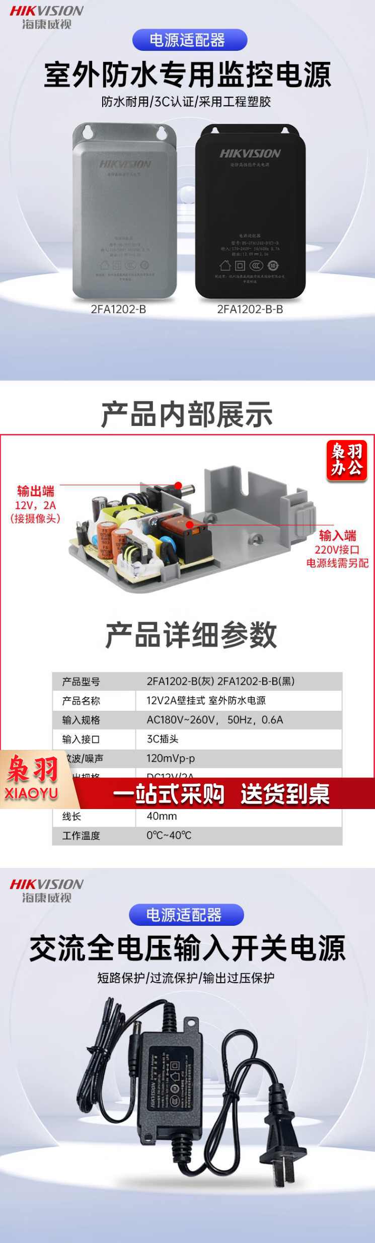 海康威视 DC12V 2A电源 监控摄像头电源适配器 防水电源