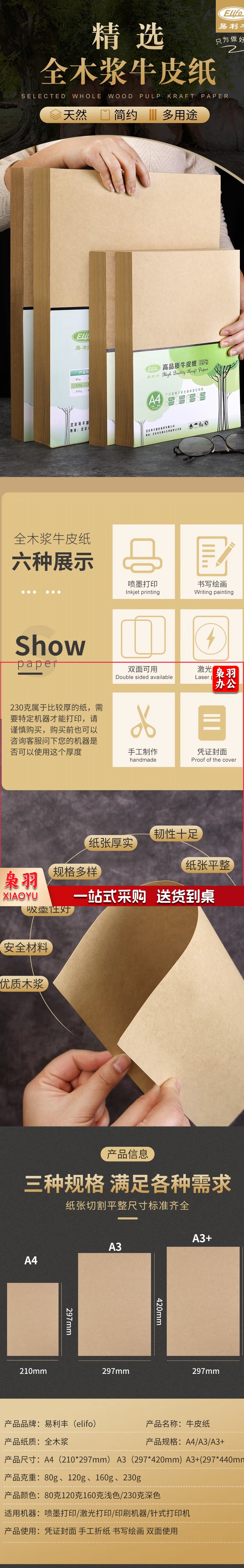 易利丰(elifo)50张230克a4牛皮纸打印纸