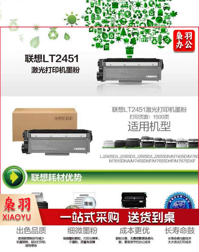 联想(Lenovo) LT2451 LD2451原装硒鼓粉盒适用于M7400PRO/7605D打印机 LT2451 粉盒