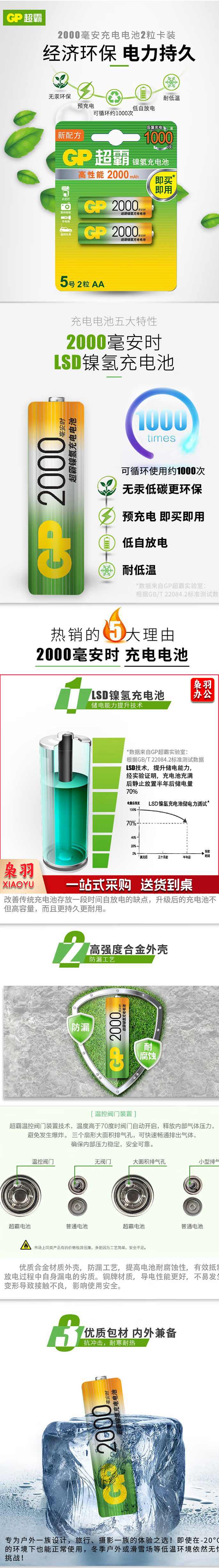 超霸(GP)充电电池5号2粒2000mAh镍氢电池