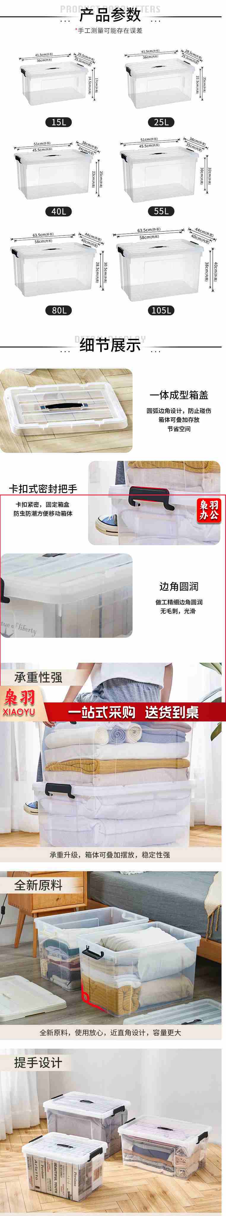 透明储物箱加厚大号整理箱手提收纳箱80L