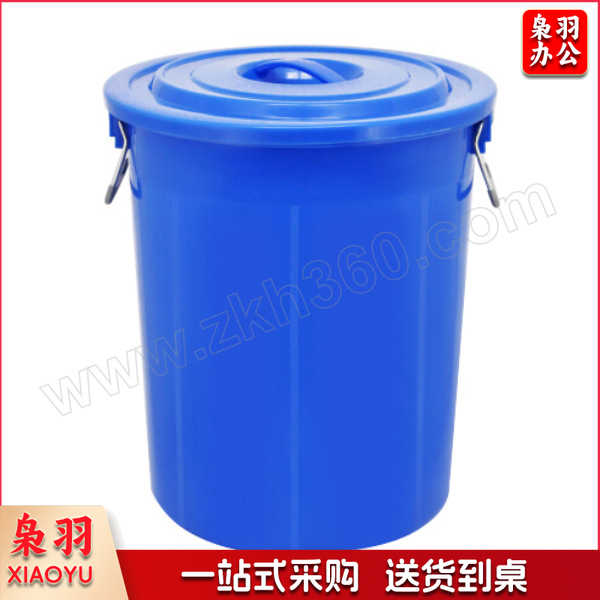 金属把手加厚带盖塑料圆桶 FW1363 150L 蓝色 1个 销售单位:个