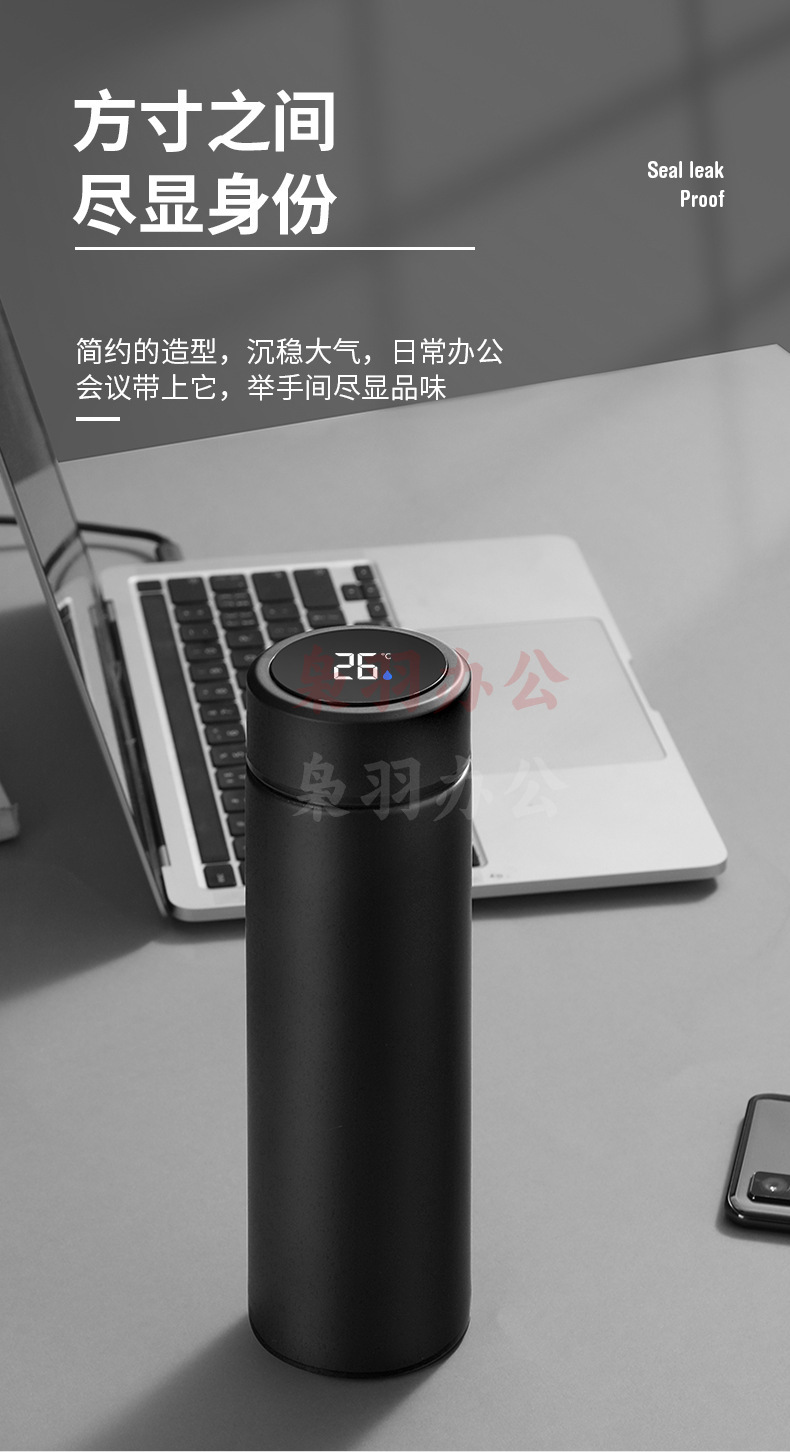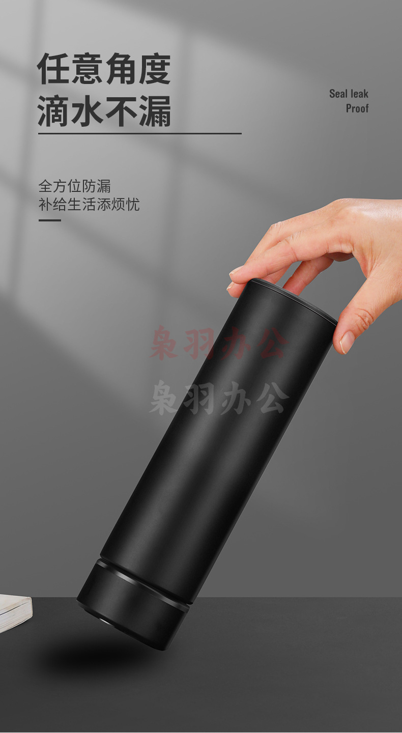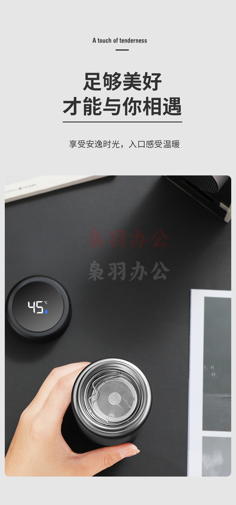 不锈钢保温杯316智能水杯男女士茶水分离(精品智能显示 黑)(若单独定制请联系)
